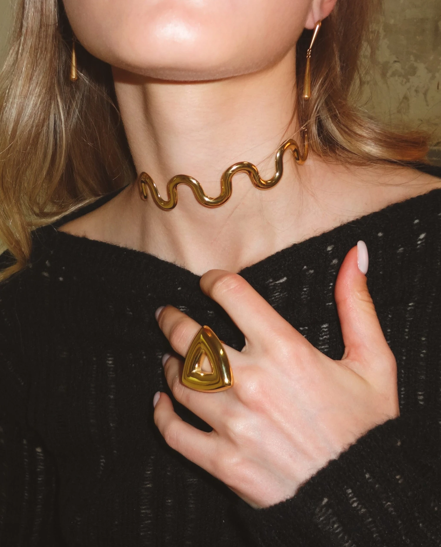 Maxi anillo triangular dorado ajustable.[readmore]El Anillo Cleo es perfecto para las amantes de las joyas maxi. Un anillo de acero inoxidable que puedes regular a tu medida y que, gracias a su baño de Oro de 18kt, tiene mucho brillo. Destaca por su motivo triangular, lo puedes llevar tanto para el día a día como en eventos.