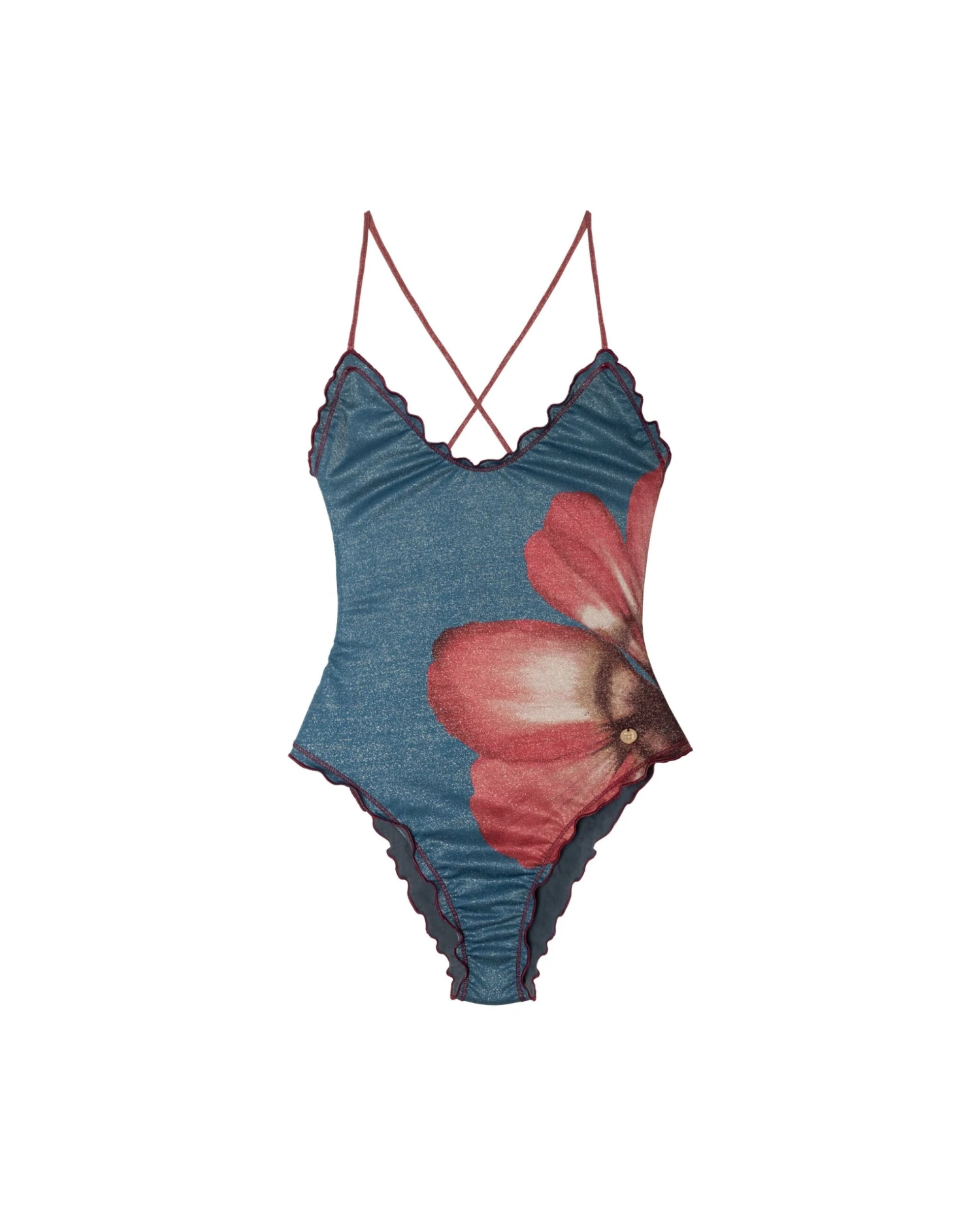 Bañador con espalda cruzada y estampado floral.[readmore]Si buscas un bañador que combine estilo y comodidad, el Bañador Costa Rica es para ti. Confeccionado con un tejido de calidad resiste agua, sol y cloro, manteniendo su color y forma tras cada baño. El escote fruncido y las sisas con puntada en contraste le dan un toque especial, y la espalda cruzada asegura un ajuste cómodo y mayor sujeción. El estampado posicional de flores con detalles en brillo sobre fondo azul lo hace único. Llévalo solo o con uno de nuestros pareos para un look de playa completo.