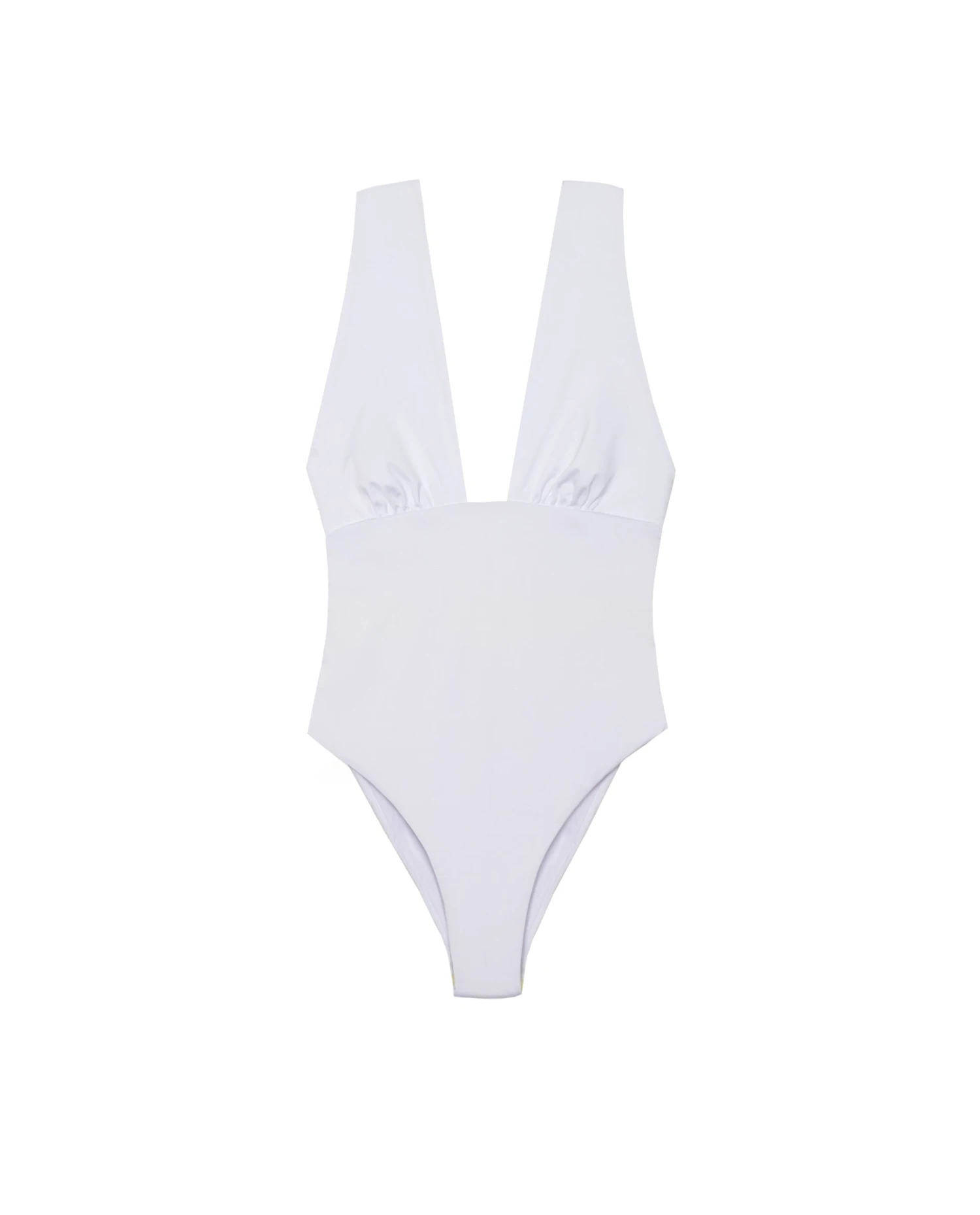Bañador blanco multiposición.[readmore]Uno de los bañadores más versátiles que no dejarás de ponerte este verano es el Bañador Granadella. El color blanco es un must para cuando estás morena, nunca pasa de moda y lo puedes llevar año tras año. Además, lo hemos diseñado multiposición para que puedas llevarlo de formas diferentes ya que las lazadas del cuello se pueden cambiar como más te guste. Te va a encantar cómo queda puesto y su tejido no puede ser más cómodo, forrado para que no transparente nada.
