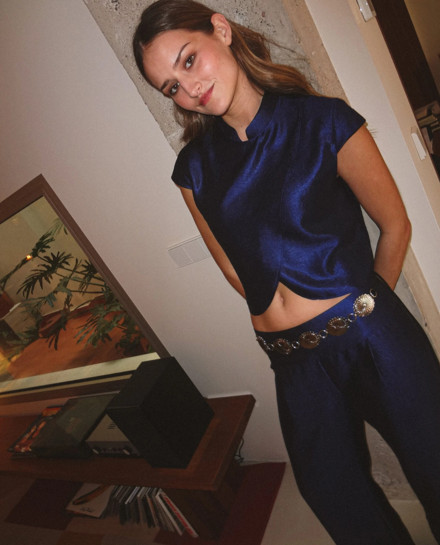- Cuello alto mao.[sizes]Misha mide 1,77 m. Lleva la talla 36 de pantalón y la XS de top. De esta prenda lleva la talla XS.