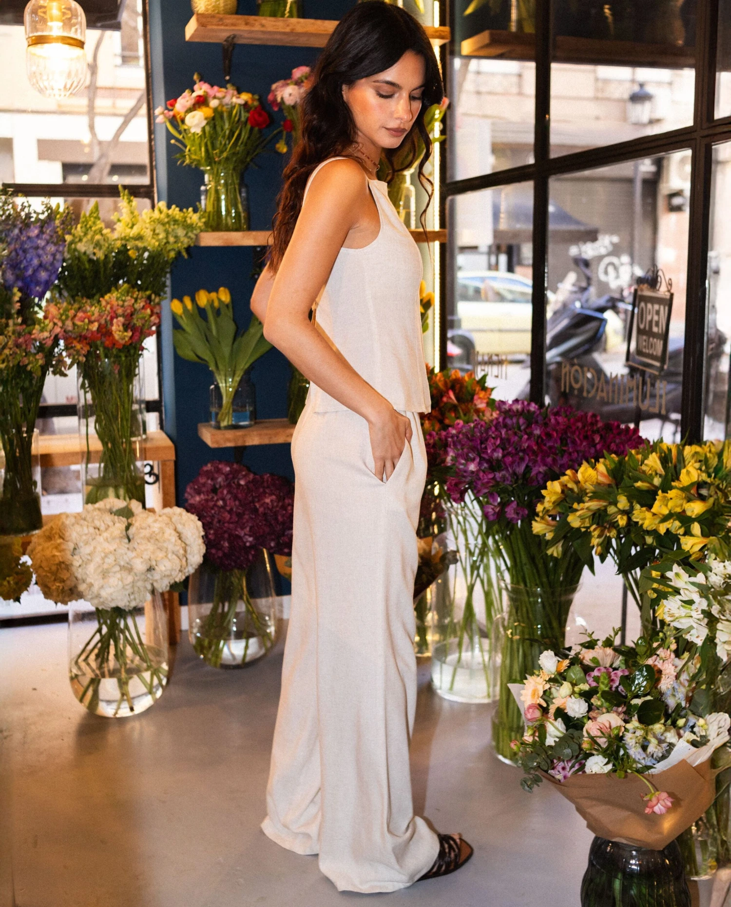 Blusa de lino con lazos en la espalda.[readmore]Un básico ent u armario d everano con un giro especial. Su escote cuadrado y su corte minimalista lo hacen súper convinable, mientras que los lazos a la espalda le dan este toque trendy y te permiten ajustarlo a tu medida. Una prenda fresca, ligera y perfecta para cualquier plan que se te ponga por delante. Llévala con su pantalón a juego para un look effortless. ¡Prepárate para sacarle el máximo partido!