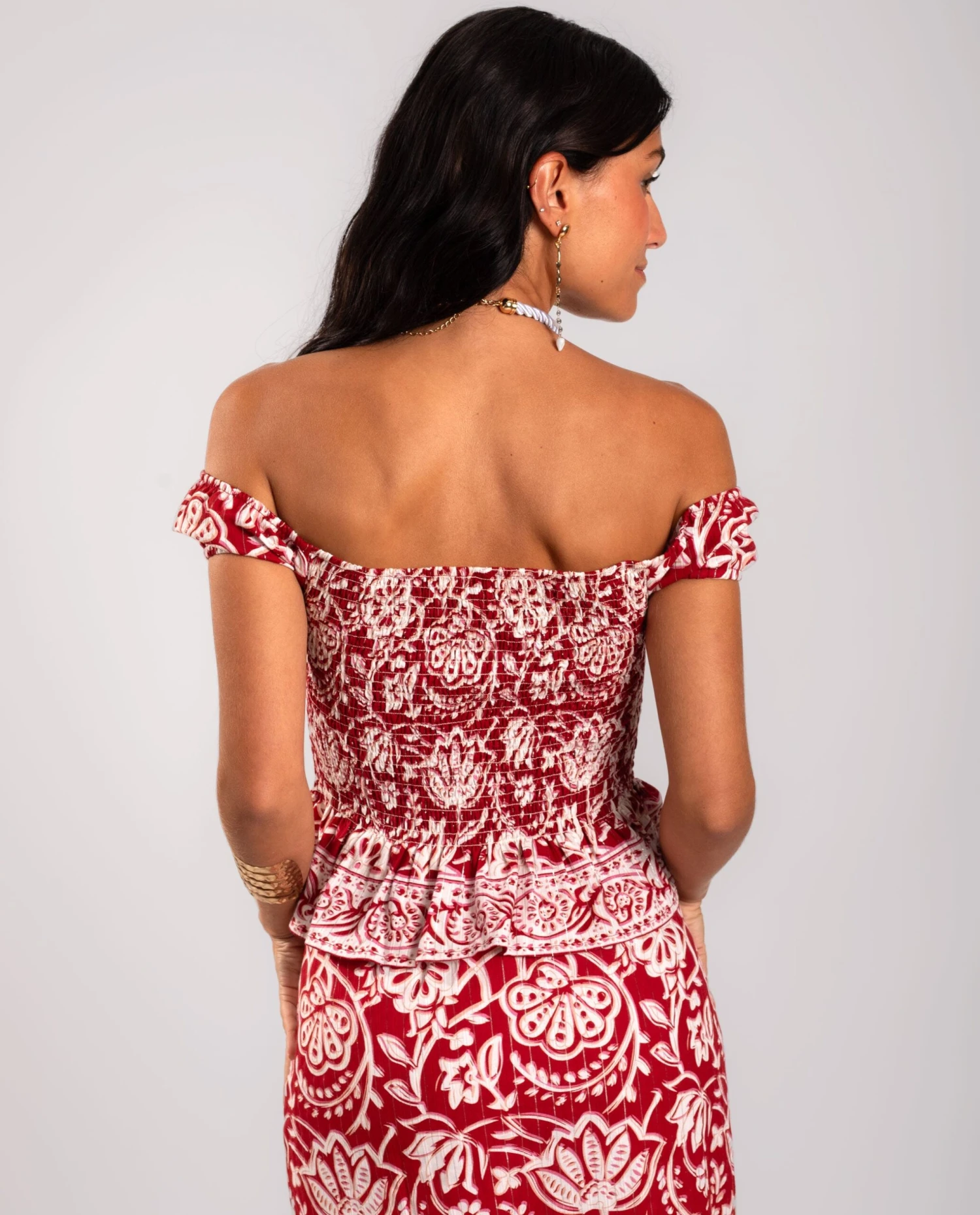 Blusa estampada con nido de abeja y estampado floral.[readmore]El conjunto que va directo a tu maleta de verano. La blusa tiene cuerpo de nido de abeja que se ajusta sin apretar, escote palabra de honor con tirantes caídos y un volante en el bajo que le da ese toque trendy. El estampado floral lo hace único y súper combinable. La falda es larga y está confeccionada con una abertura lateral para mayor comodidad. Dale tu toque de estilo con unas sandalias planas o de tacón, ¡podrás adaptarlo a todos tus planes de verano!
