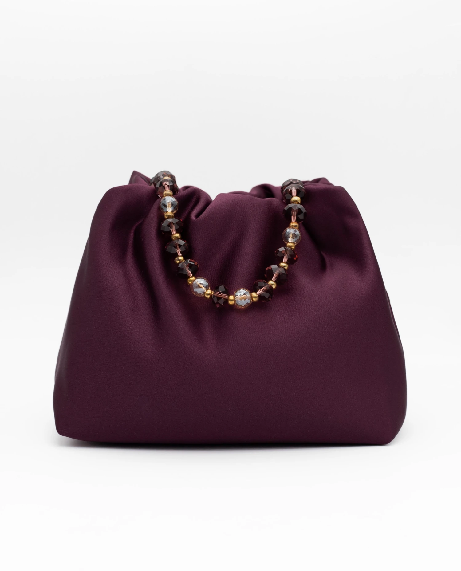 Bolso de mano ciruela fruncido con asas para eventos.[readmore]Nos habéis preguntado mucho por él y es que este bolsito de mano es ideal para complementar cualquier look de invitada. Es juvenil, diferente, fresco y, sobre todo, es un diseño 100% original de THE-ARE hecho en España. Este minibolso estilo bombonera destaca por sus asas decoradas con piedras naturales, por lo que el color y el tamaño pueden variar con respecto a la foto. Encuentra este bolso en otros colores.