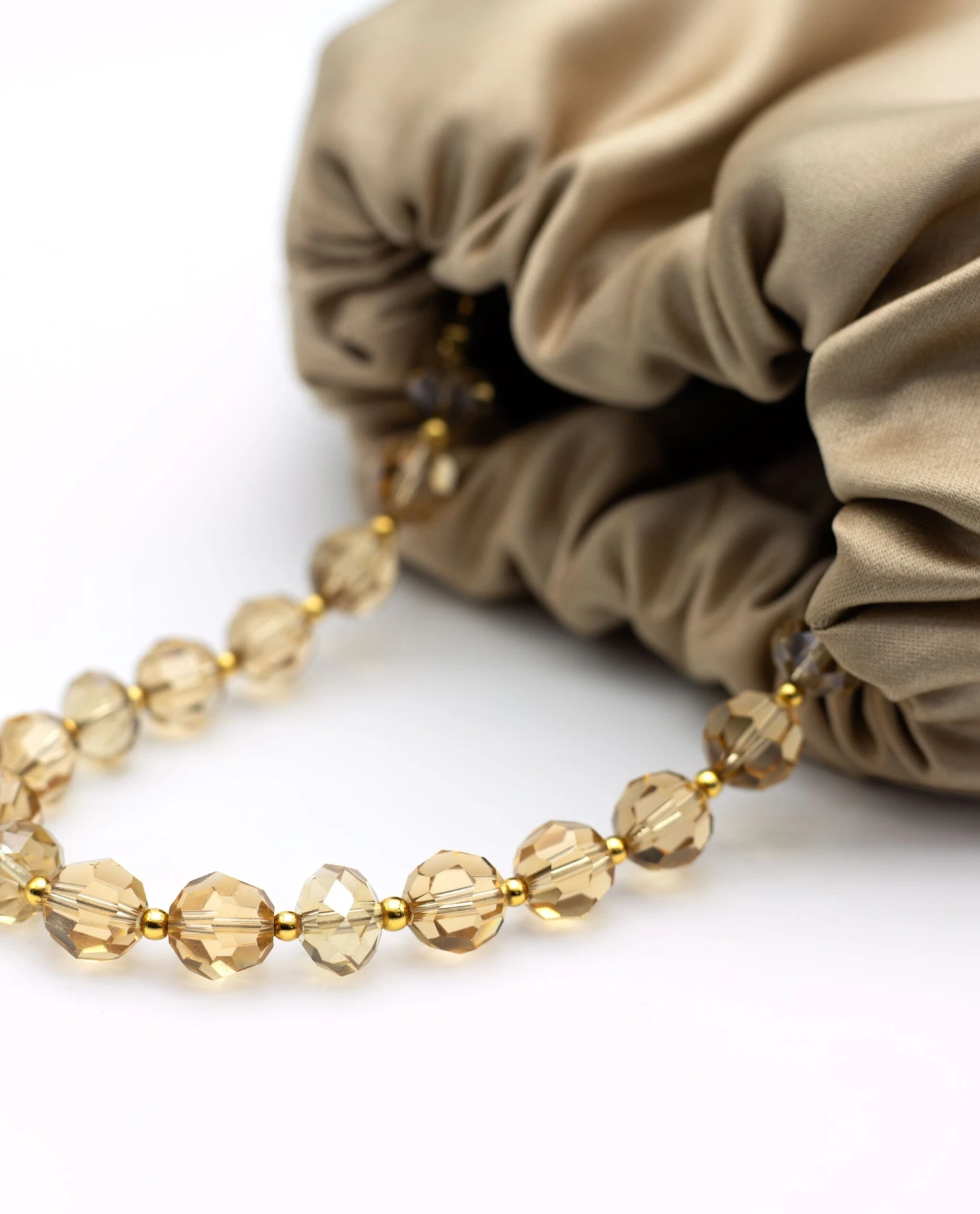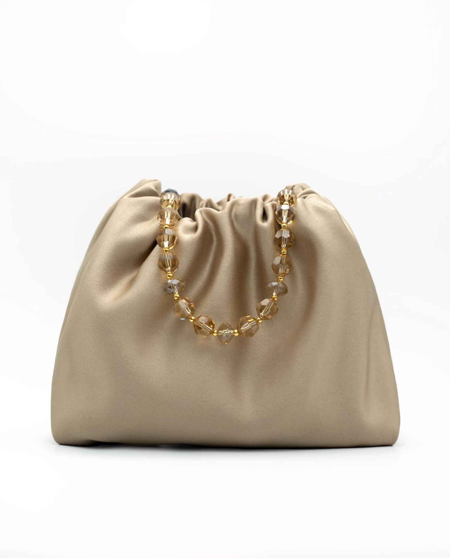 Bolso de mano fruncido con asas para eventos.[readmore]Nos habéis preguntado mucho por él y es que este bolsito de mano es ideal para complementar cualquier look de invitada. Es juvenil, diferente, fresco y, sobre todo, es un diseño 100% original de THE-ARE hecho en España. Este minibolso estilo bombonera destaca por sus asas decoradas con piedras naturales, por lo que el color y el tamaño pueden variar con respecto a la foto. Encuentra este bolso en otros colores.