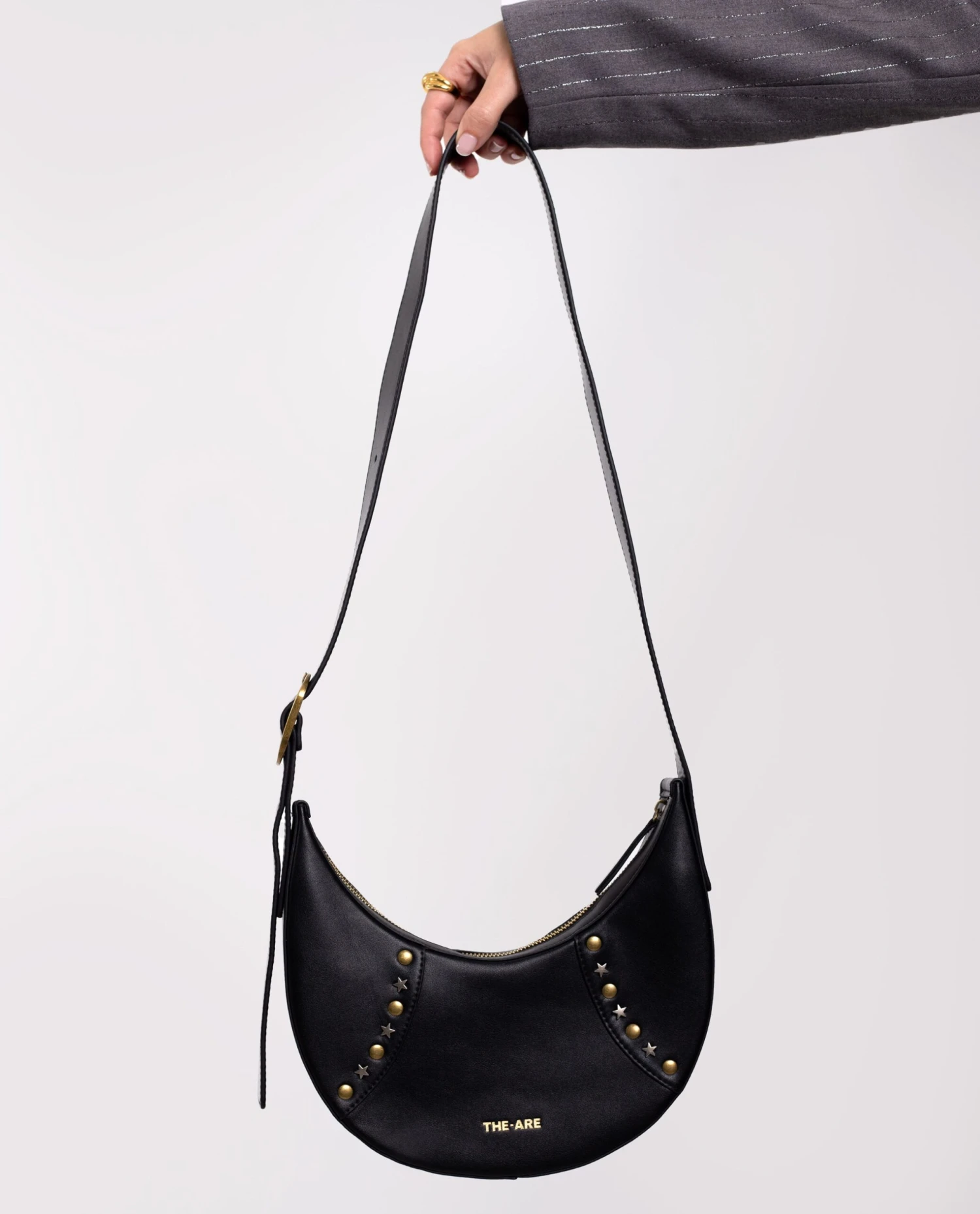 Bolso de piel napa 100% con forma de media luna y tachuelas.[readmore]¡Por fin ya está aquí el primer bolso de piel de THE-ARE! El Bolso Muse ha sido diseñado acompañaros a diario, combinando a la perfección estilo y funcionalidad. Confeccionado en piel napa 100%, destaca por su elegante forma de media luna y detalles de tachuelas en latón envejecido en tonos dorado y plateado. Disponible en negro y burdeos, es el complemento perfecto para cualquier ocasión. Su asa y base están reforzadas para mayor durabilidad, cuenta con un interior forrado y la longitud del asa es ajustable. ¡Un bolso versátil que no querrás dejar de usar!