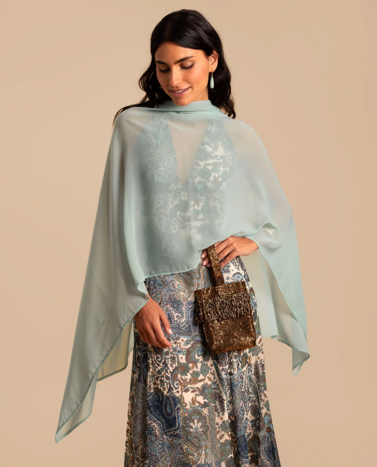 Echarpe de gasa para eventos.[readmore]Uno de los complementos más buscados para eventos por su versatilidad y funcionalidad. Esta capa de invitada está confeccionada en un tejido de gasa súper fluido, sedoso y agradable al tacto que elevará cualquier look a otro nivel.