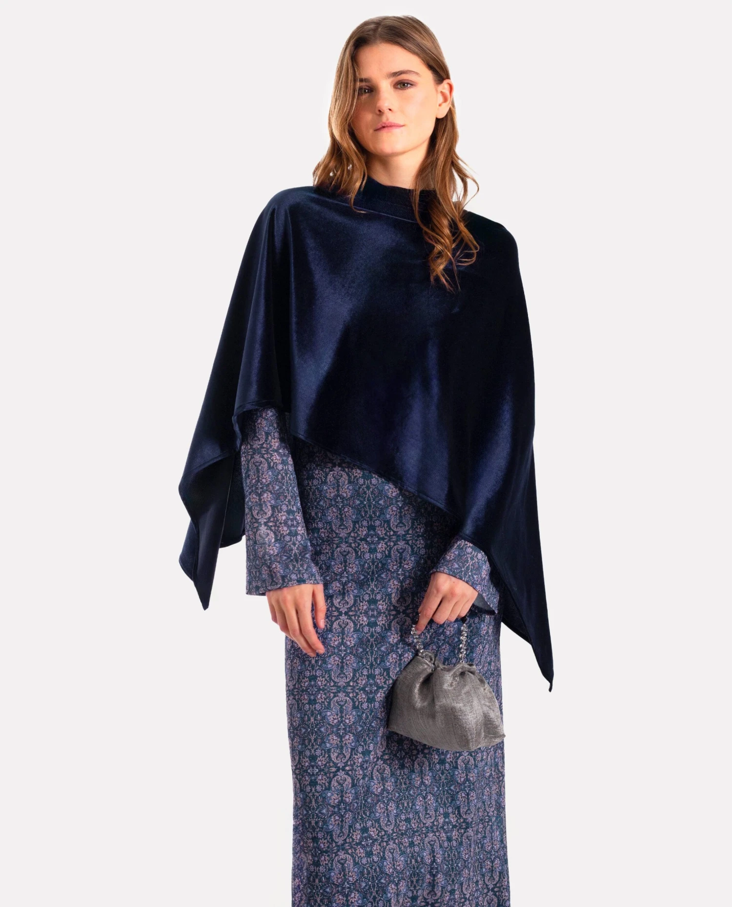Capa de terciopelo azul marino de invitada.[readmore]Uno de los complementos más buscados por los las invitadas de otoño-invierno. Esta capa de invitada aterciopelada, muy agradable al tacto, está unida y es el complemento perfecto para elevar tus looks más elegantes. Es muy agradable al texto y el color burdeos además de ser muy favorecedor, esta temporada es todo un must have.