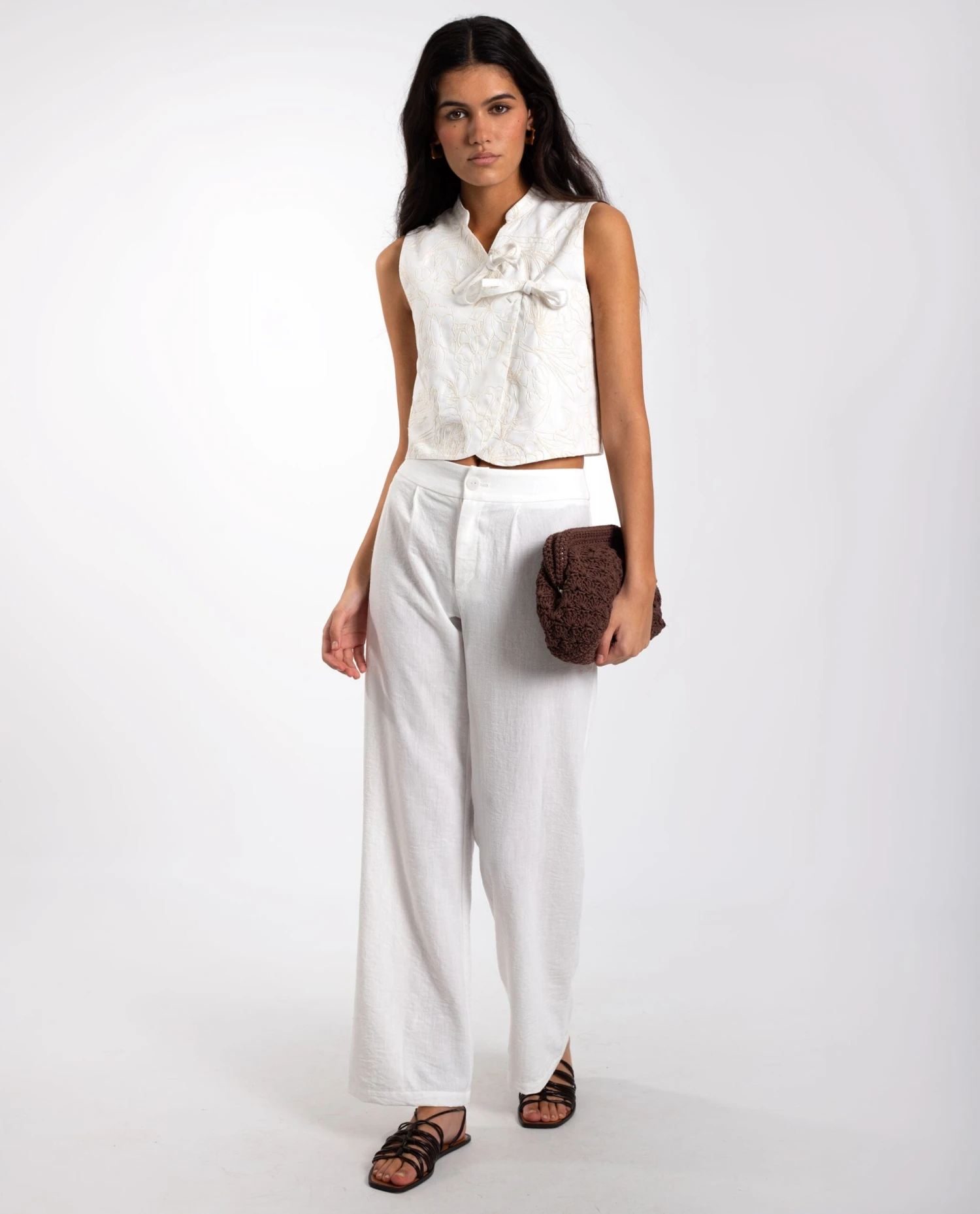 Chaleco con lazadas de lino bordado.[readmore]Este chaleco se convertirá en tu imprescindible por su versatilidad y sus detalles especiales que lo hacen único. Confeccionada en tejido con lino, tiene el cuello redondo cerrado con una obertura, con con detalles bordados y cierre con lazos. Diseñada con un corte ligeramente cropy, es una prenda imprescindible que podrás combinar con todo. ¡Tiene todo lo necesario para ser tu prenda clave en primavera/verano!
