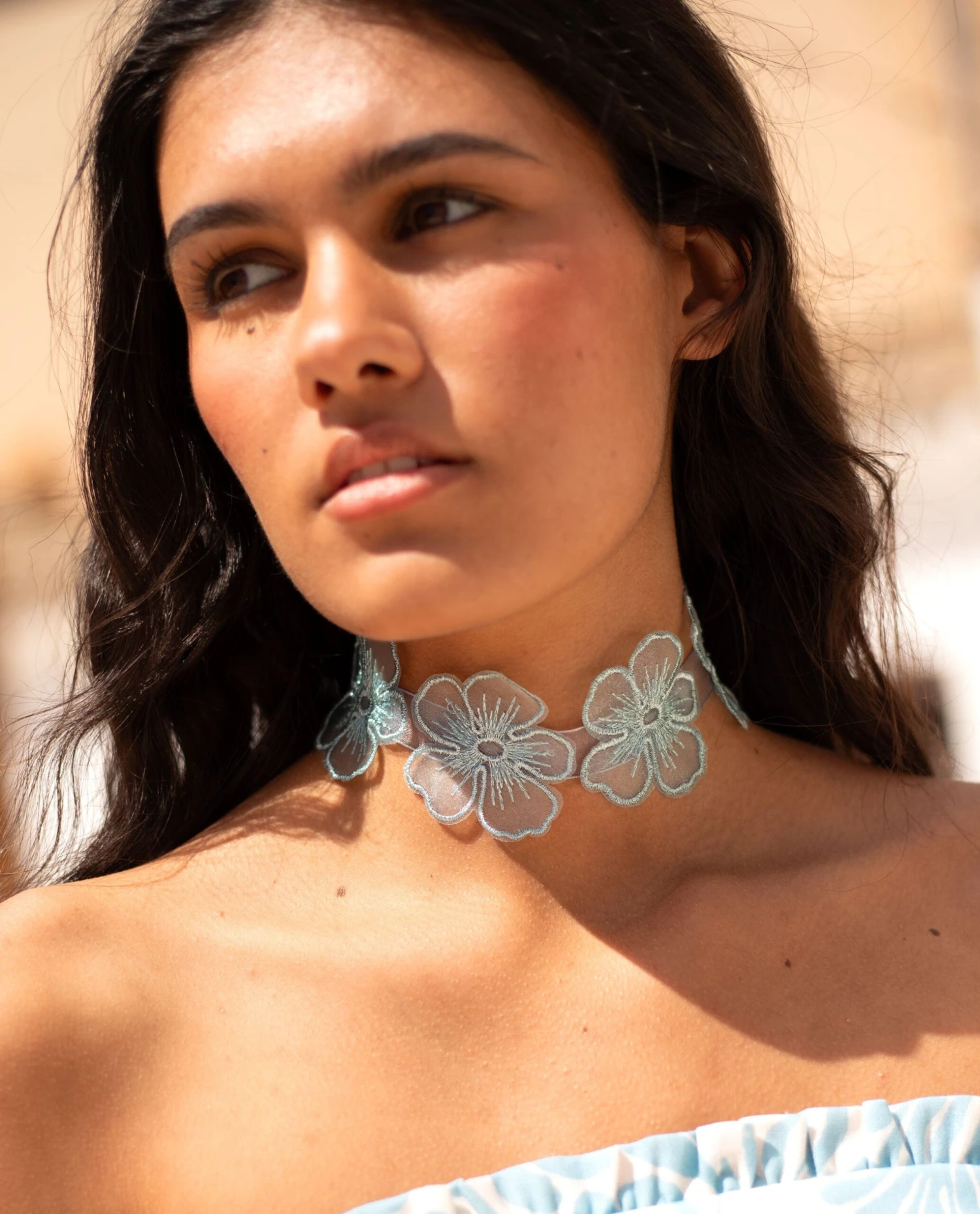 Choker de tejido en organza con forma de flor.[readmore]Este choker es el toque ideal para darle un giro a cualquier outfit. Con las flores como protagonistas, su diseño en tejido de organza te aporta un estilo súper versátil y elegante. El largo ajustable te permite llevarlo como más te guste. ¡No puede faltar en tu colección de accesorios!