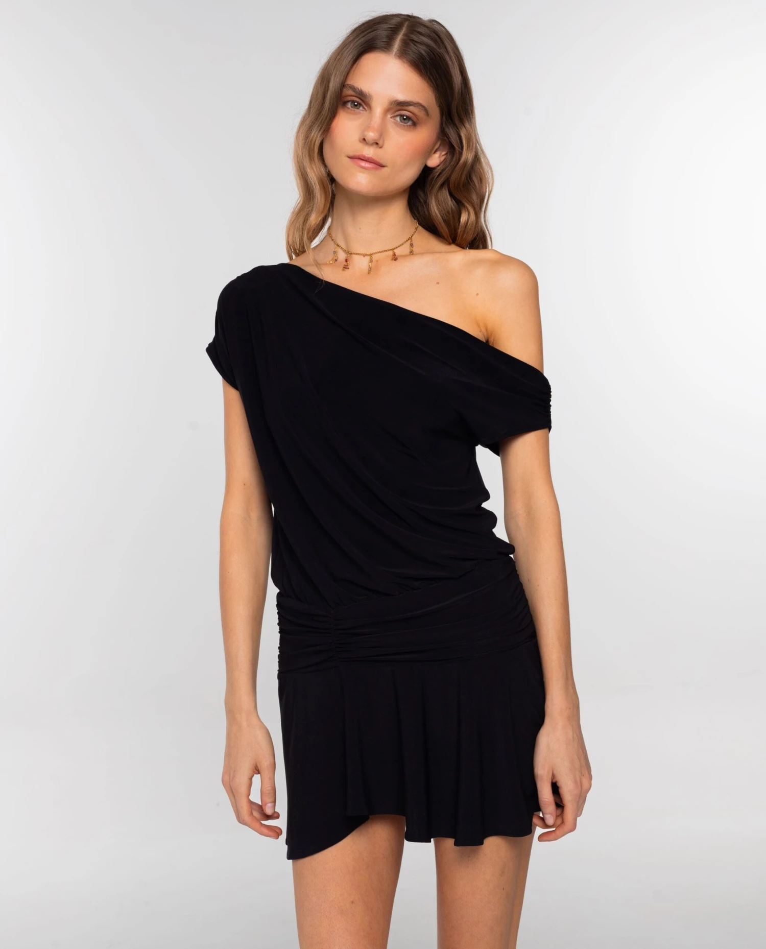 - Collar dorado con flecos multicolor.