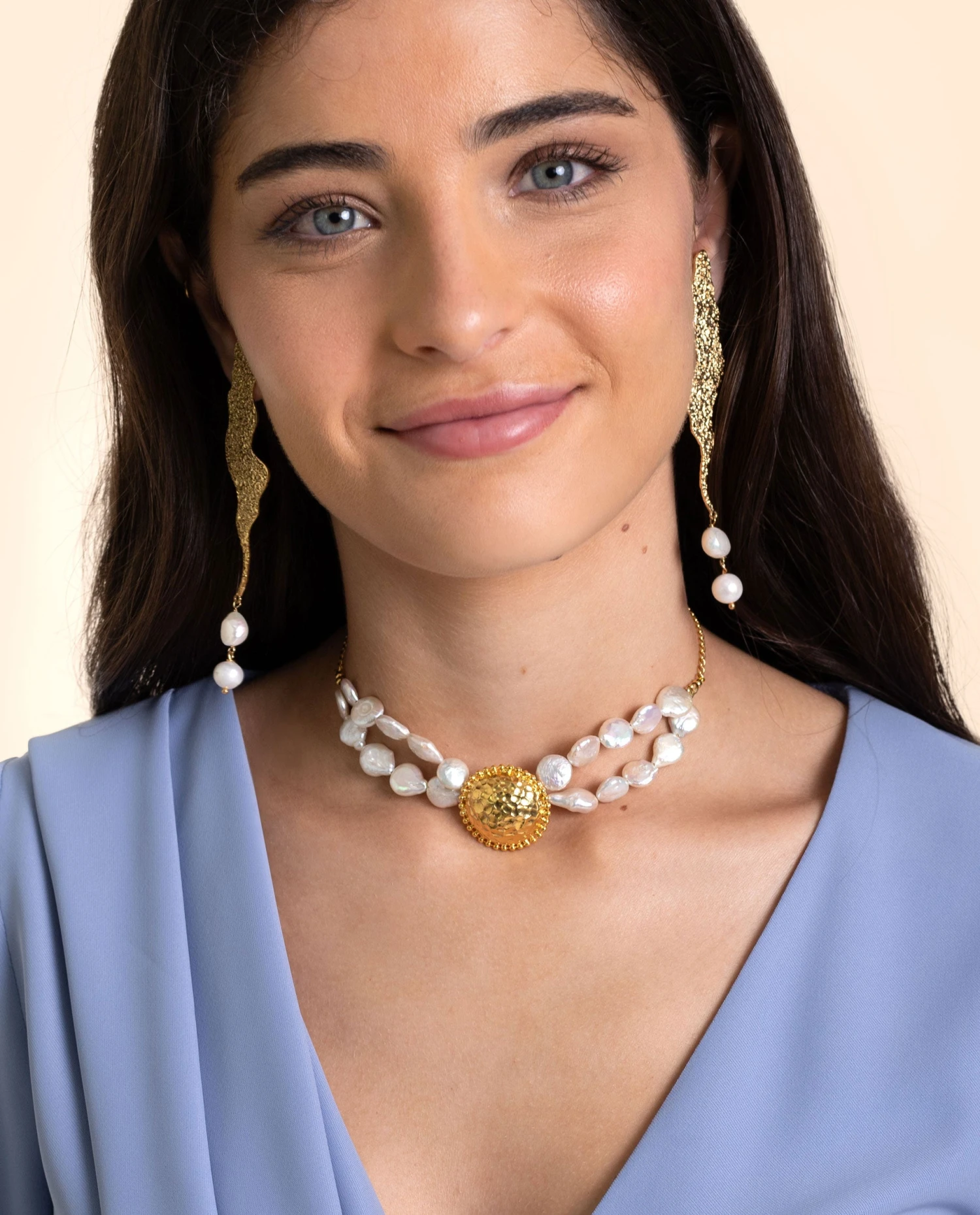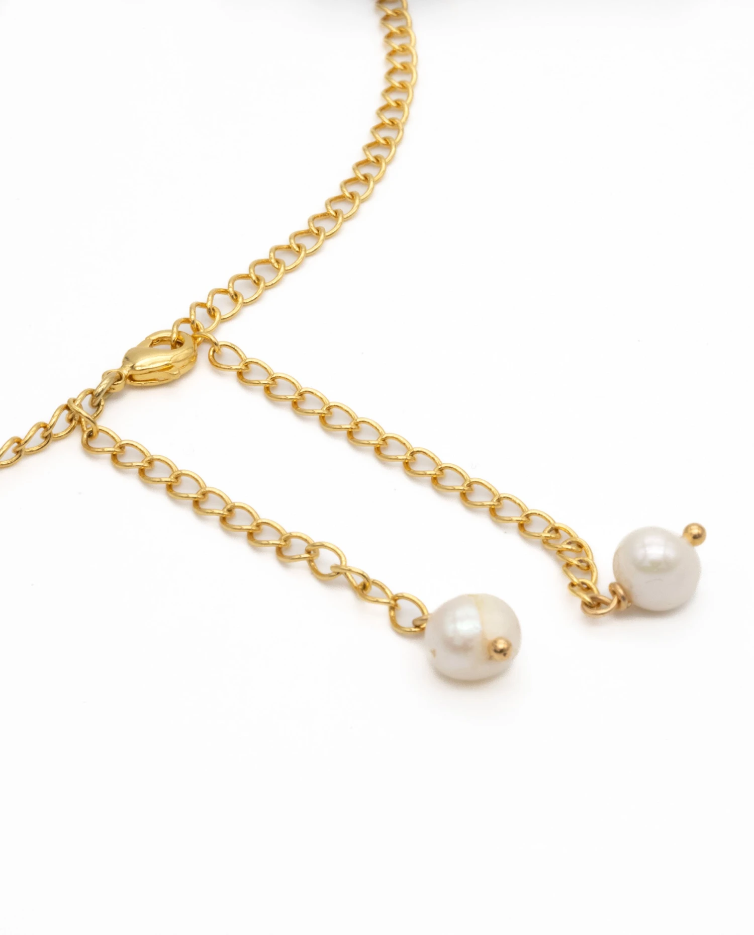 Collar de perlas doble con medalla de oro.[readmore]La elegancia que aporta este choker de perlas, junto con la cadena dorada y la medalla bañada en Oro de 18kt, se unen para crear el collar perfecto para ocasiones especiales. Es ajustable a todos los contornos de cuello y las perlas naturales se unen con un hilo de acero para dar la máxima resistencia.