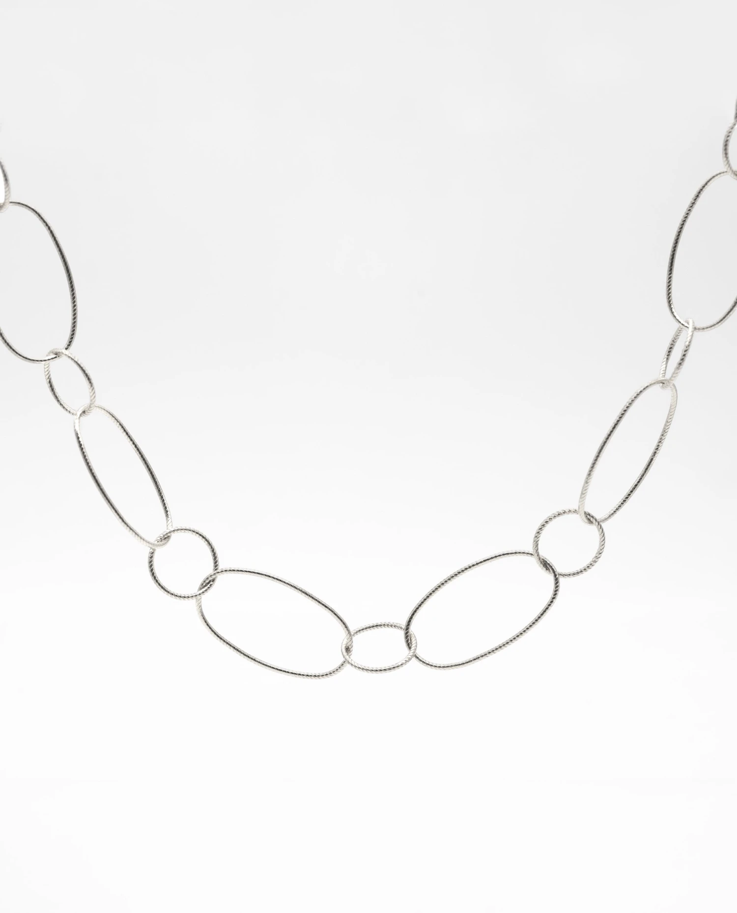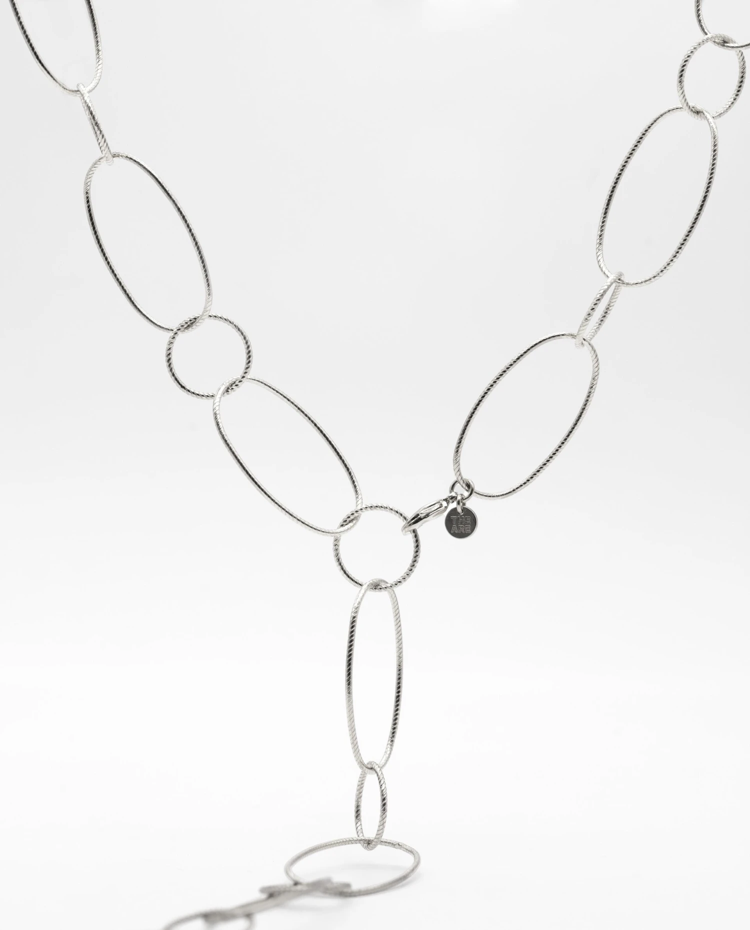 Collar largo dorado con eslabones ovalados.[readmore]Un collar tan versátil como elegante. Es uno de los diseños tendencia y este va a volar! Está compuesto por eslabones ovalados y redondos con textura trenzada y completan tu look lleves la prenda que lleves. Gracias a su cierre lo puedes ajustar a cualquier eslabón de la cadena y llevarlo de diferentes formas.