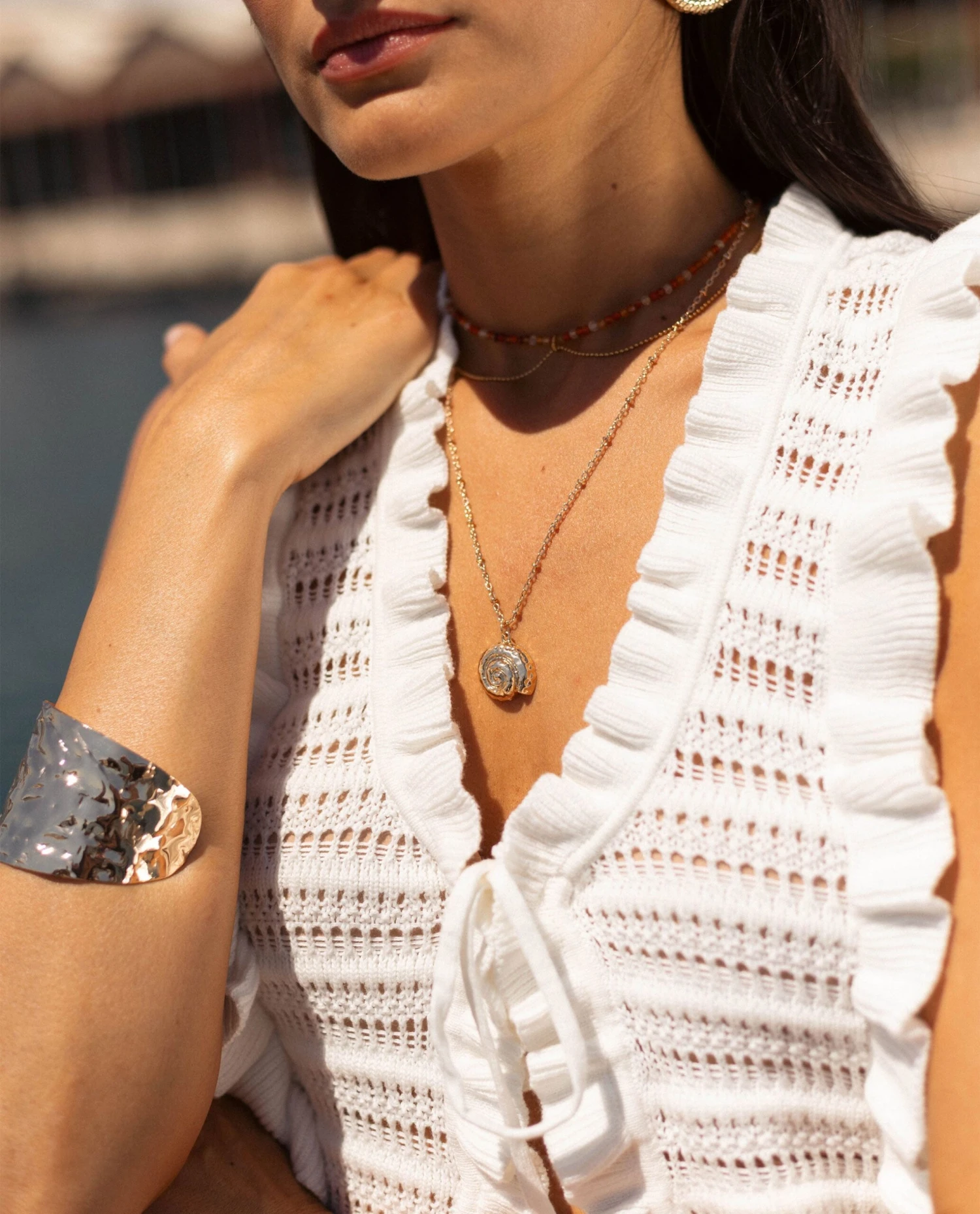 Collar largo con motivo de concha.[readmore]Un collar que suma un detalle sutil y natural a cualquier look. El motivo pequeño de concha aporta un toque desenfadado, mientras que sus 40 cm de largo total (35 cm + 5 cm alargador) permiten ajustar la caída según prefieras. Ligero y fácil de combinar para looks diarios o más relajados. ¡Hazte con este collar tan original!