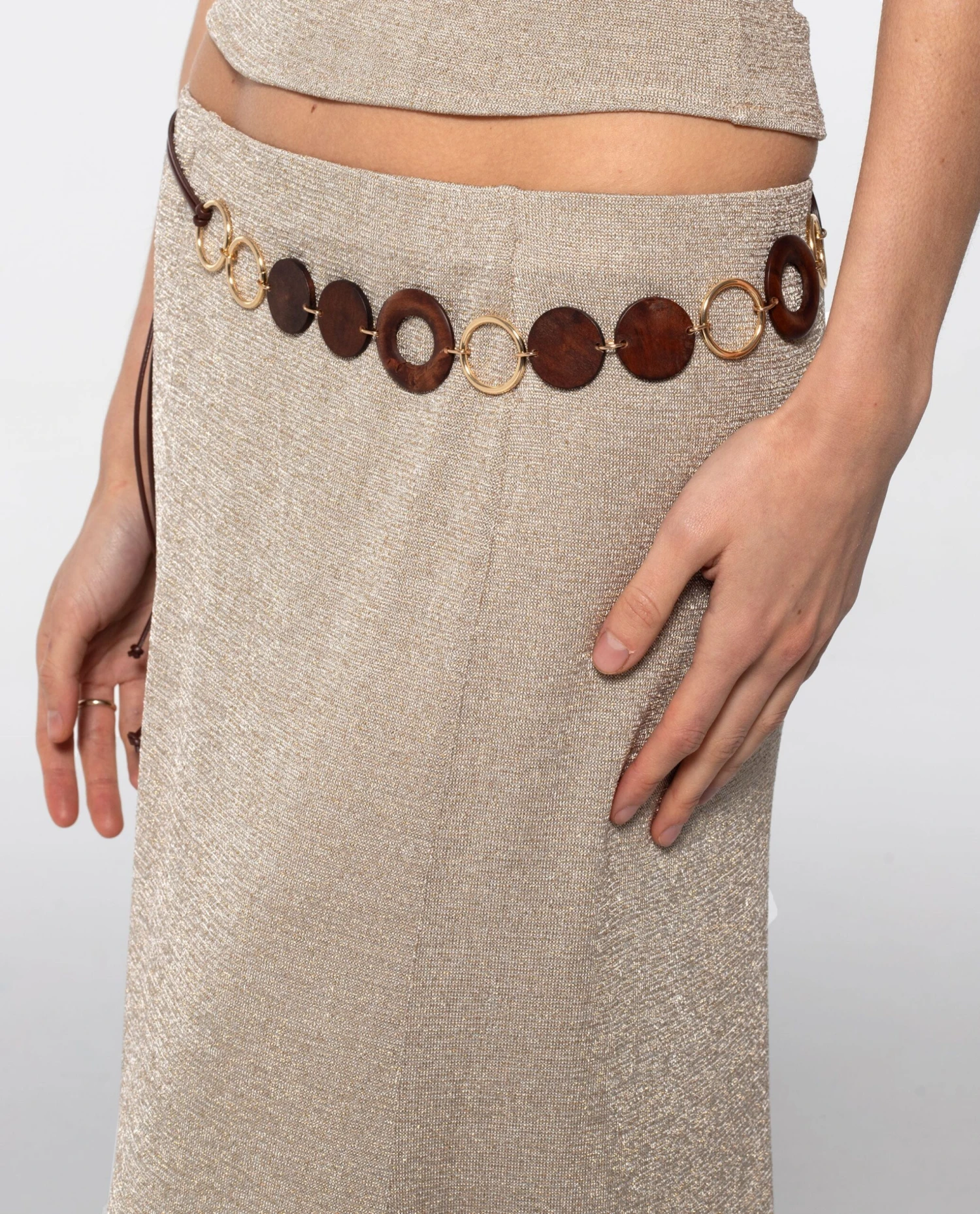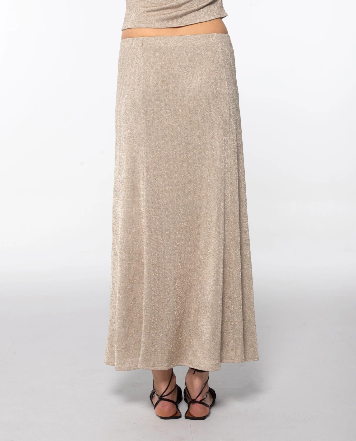 Falda con diseño midi y tejido dorado.[readmore]Sabemos que llevabas tiempo esperando este conjunto y por fin ya está disponible! Este conjunto de top y falda es lo más para fiestas o tus ocasiones más especiales, es es una de nuestras joyas de la colección! El tejido tiene un brillo precioso y se adapta al cuerpo, por lo que irás muy cómoda. El top tiene tirantes asimétricos para que le des el look que más se adapte a tu estilo. La Falda tiene corte midi y goma en la cintura. Combínalo con un cinturón de tiro bajo para un look súper trendy!
