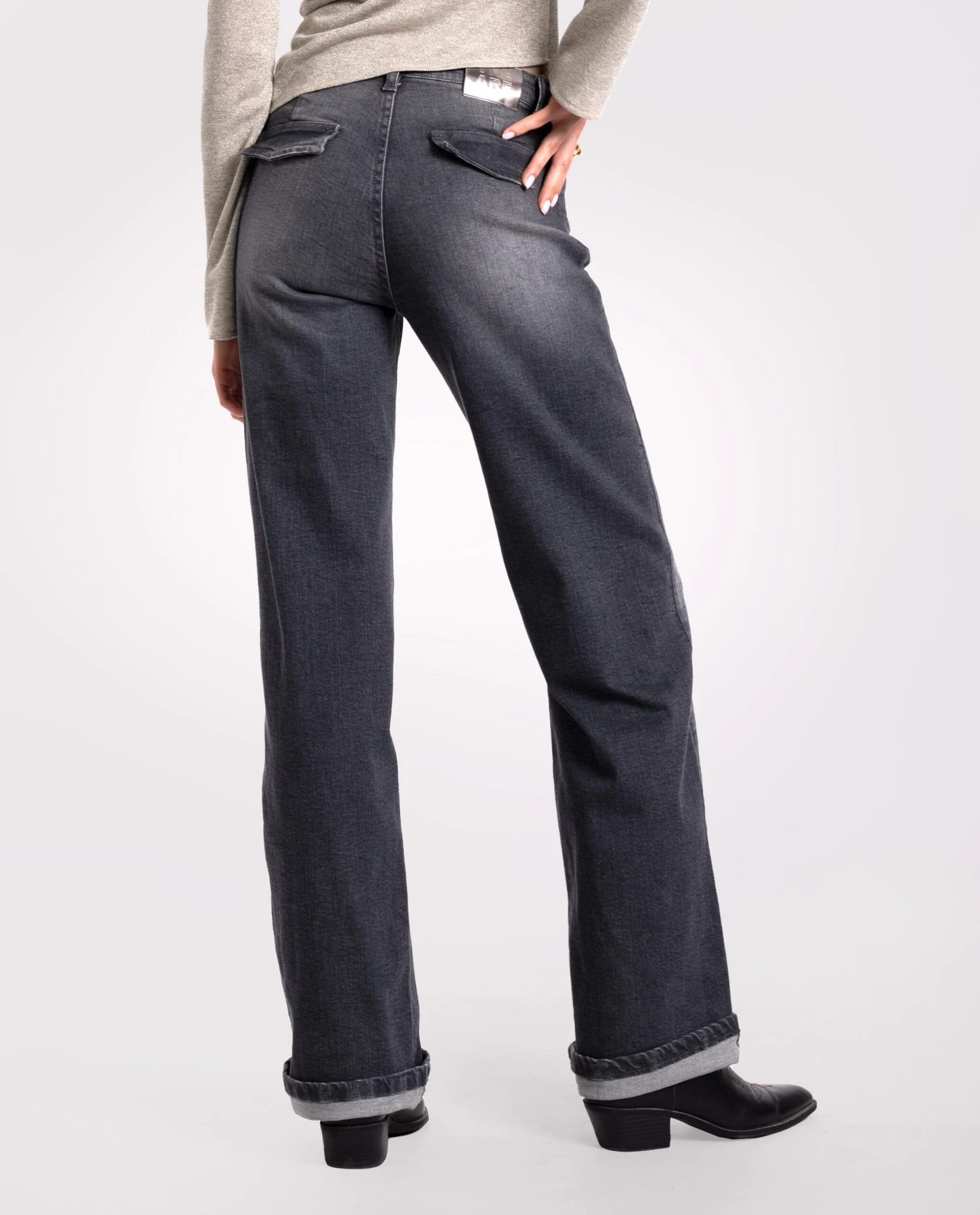 Jeans baggy grises de mujer con bajo doblado.[readmore]Los jeans más buscados de la temporada ya están en THE-ARE! El corte oversized de los jeans baggy le da un estilo diferente a cualquier look, aportando ese toque desenfadado y con mucho rollo. El detalle de la vuelta en el bajo no solo añade un punto extra de estilo, sino que también los hace más cómodos de llevar. Confeccionados en un denim gris de efecto lavado que les da un aspecto vintage y desgastados, cuentan con bolsillos delanteros y traseros. No necesitarás más que un top o una camiseta para completar un look. ¡Son la prenda esencial que tu armario necesita!