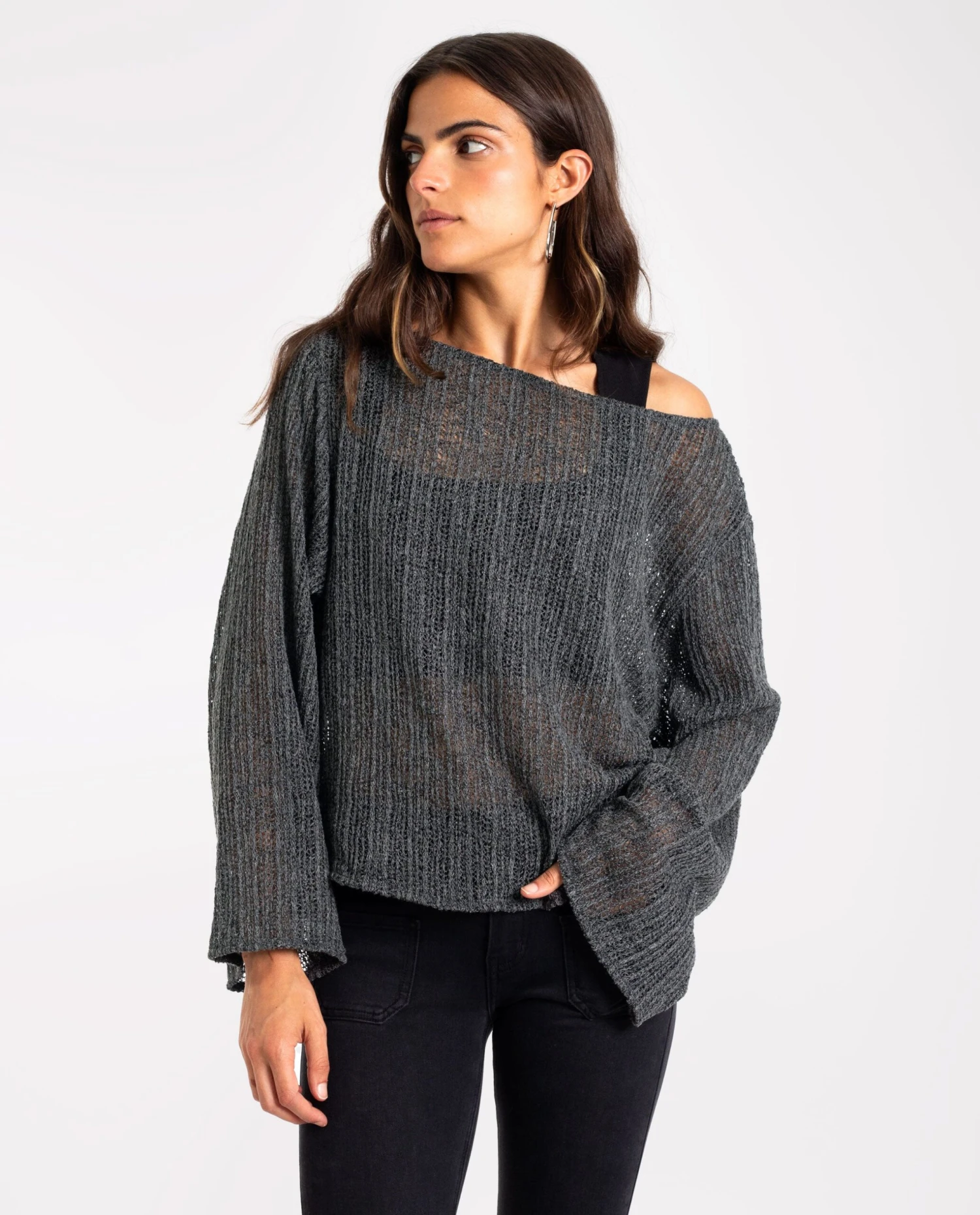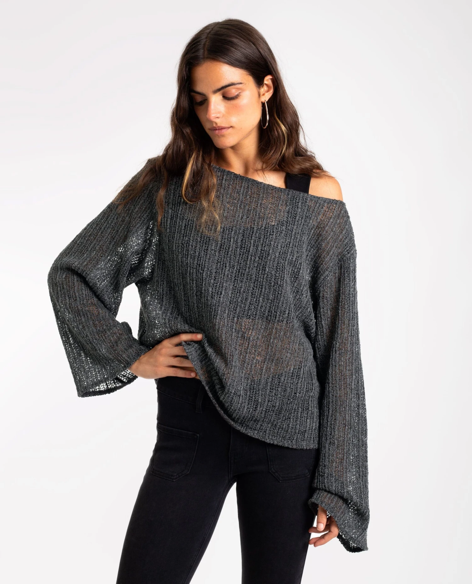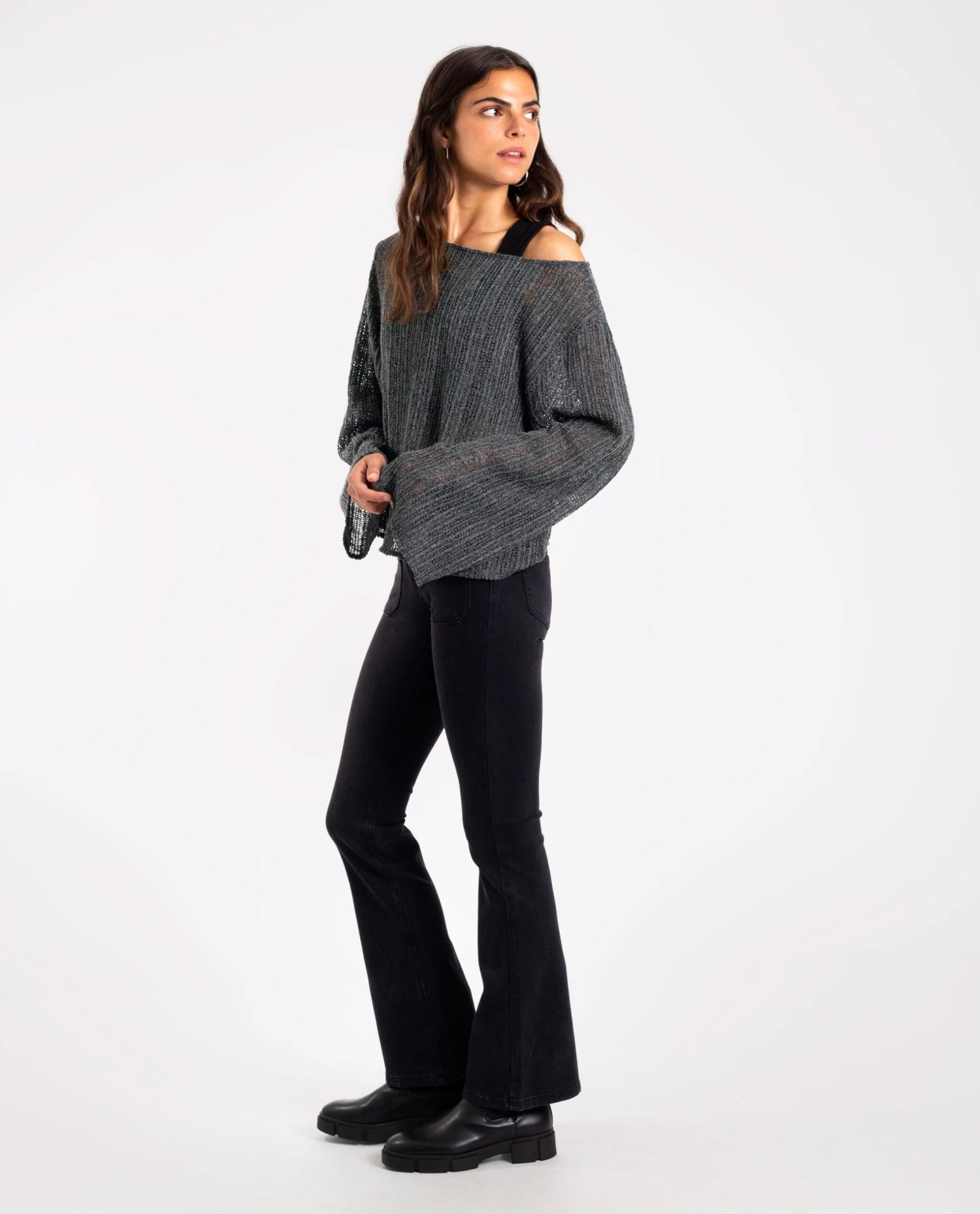 Jersey gris oversize de punto calado.[readmore]El jersey favorito de muchas ya que combina con todo y es muy cómodo de llevar. Confeccionado en punto calado, su color gris es perfecto para la temporada y su diseño oversize con hombros caídos le da un estilo informal y trendy. Las mangas, diseñadas extra largas y acampanadas, aportan dimensión al look. Puedes optar por llevarlo más corto o largo según la talla que elijas. Hazte con él, es un imprescindible que aporta mucho estilo!