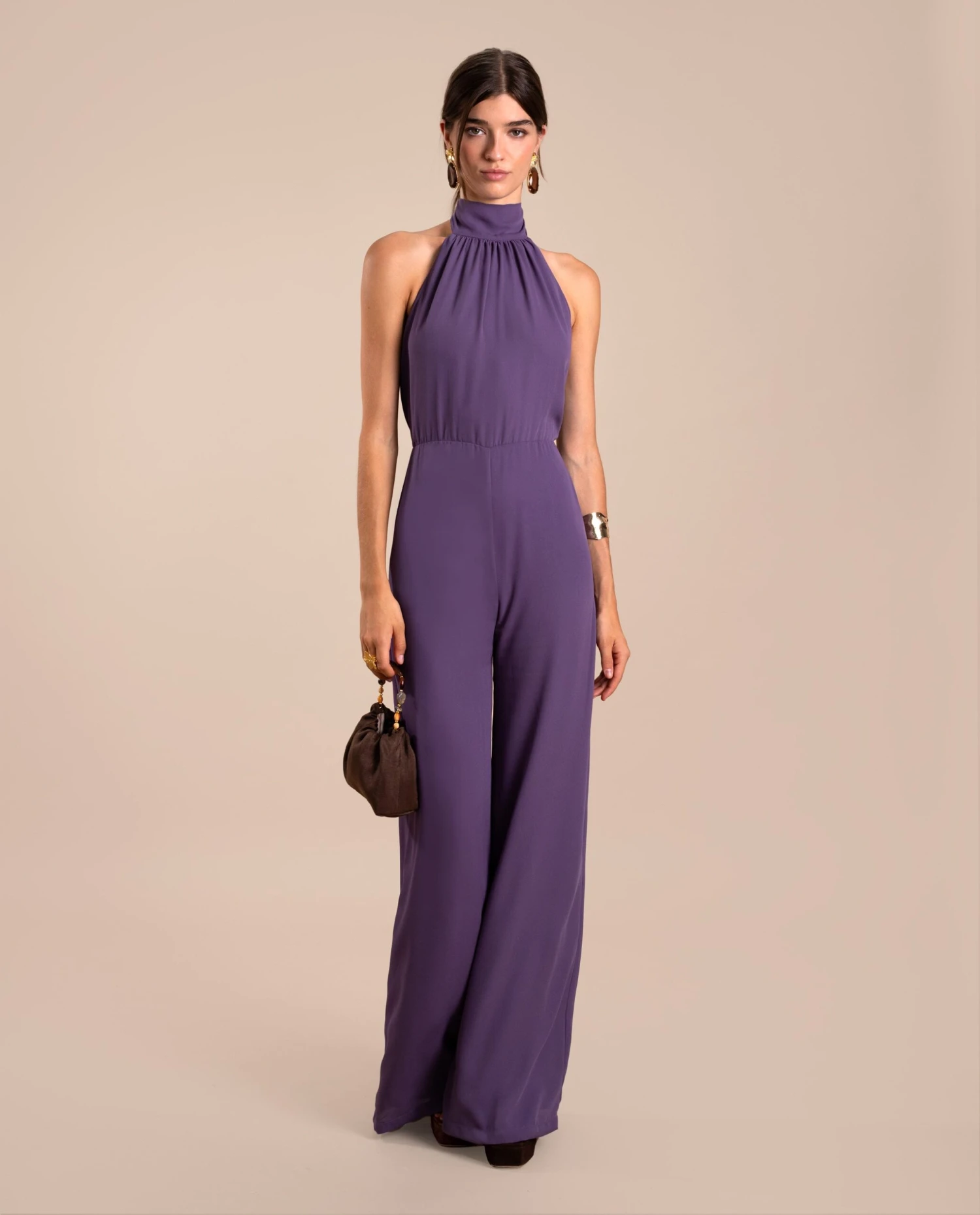 Mono largo lavanda con escote halter y lazada al cuello.[readmore]Este mono de invitada se convierte en una de las opciones más elegidas por las invitadas para bodas y graduaciones por su diseño y color. Tiene el escote halter drapeado con lazada al cuello, muy discreto para dejar todo el protagonismo a su espalda totalmente descubierta. El tejido de gasa es muy fluido, con mucha caída y el pantalón palazzo es comodísimo, entallado con efecto push up para que siente perfecto. Va forrado para que no transparente nada.