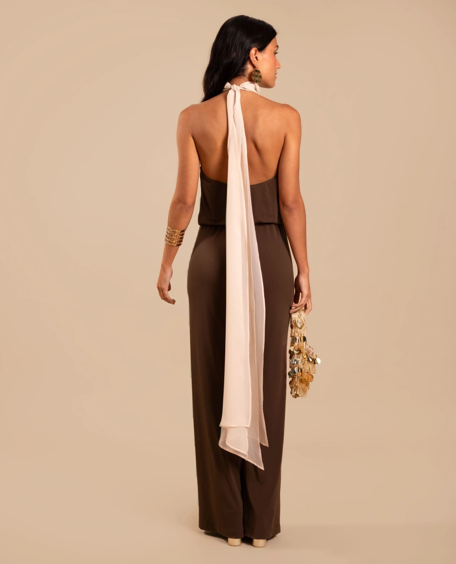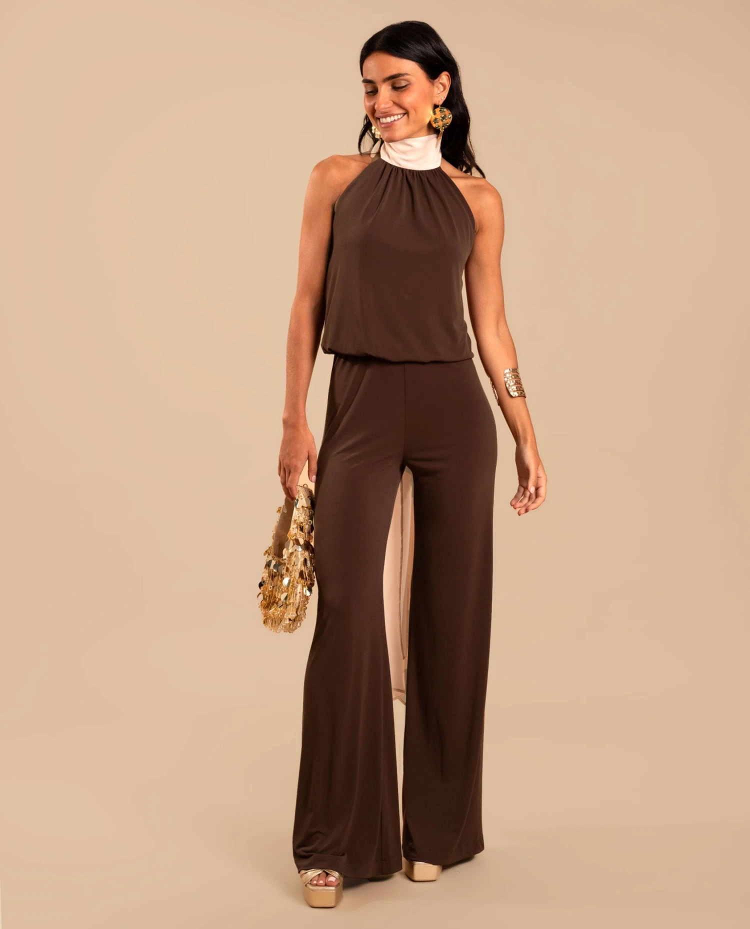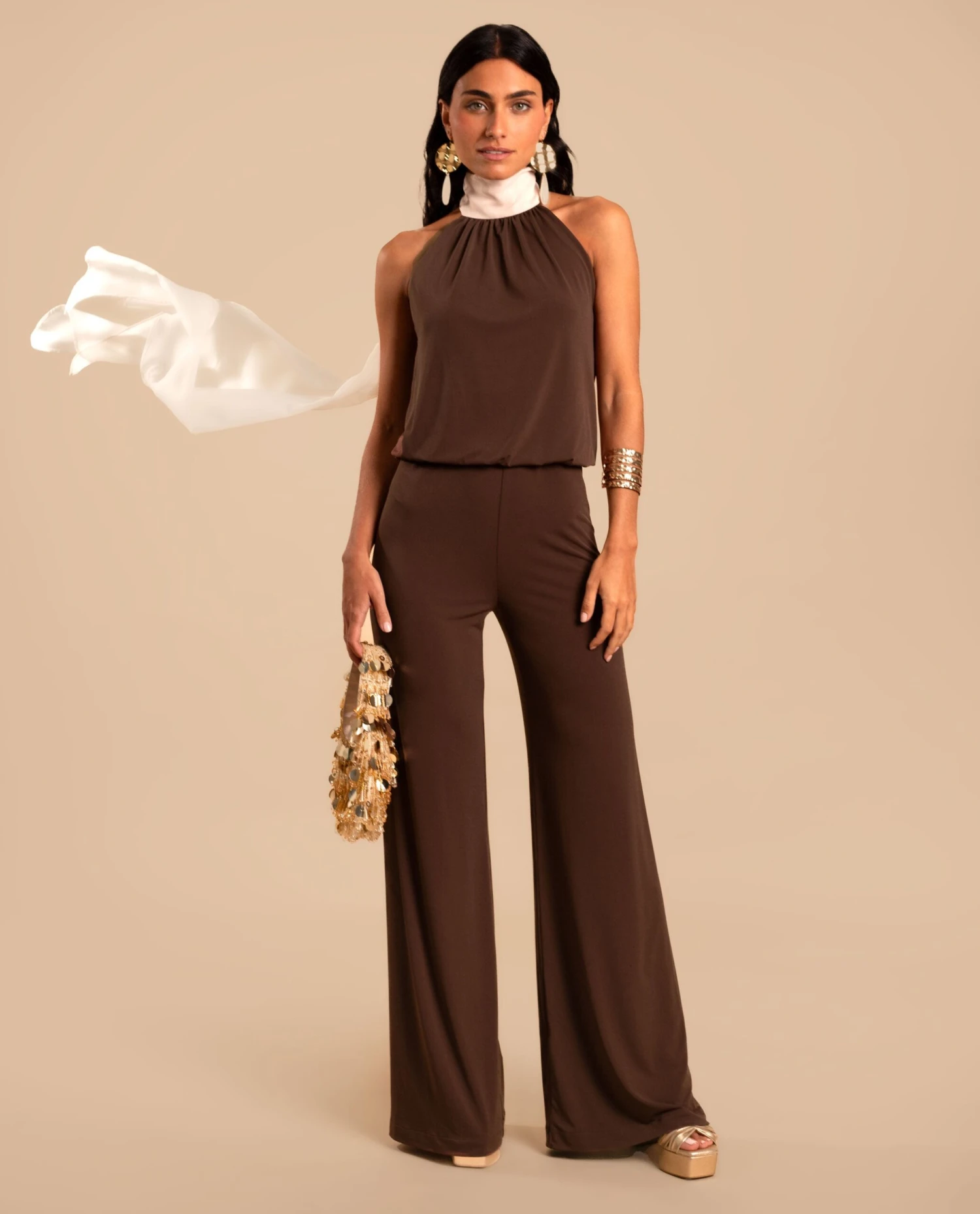 Mono de punto con cuello halter ajustable.[readmore]Una prenda que te resuelve cualquier evento y con la que además irás cómoda e ideal. Tiene ese punto sofisticado y relajado que encaja en todos tus planes especiales: desde un boda a una graduación. Está confeccionado en un tejido de punto súper cómodo que se adapta perfectamente al cuerpo. El cuello halter le da un toque sofisticado y además se ajusta al cuello con una lazada de gasa, aportando un toque fluido y especial al diseño. Además, el corte a la cadera estiliza sin marcar y la pierna ancha le da un movimiento increíble al andar. Añádele unas plataformas o tus sandalias favoritas para un look de 10. Disponible en rosa fresa y en un marrón elegante.