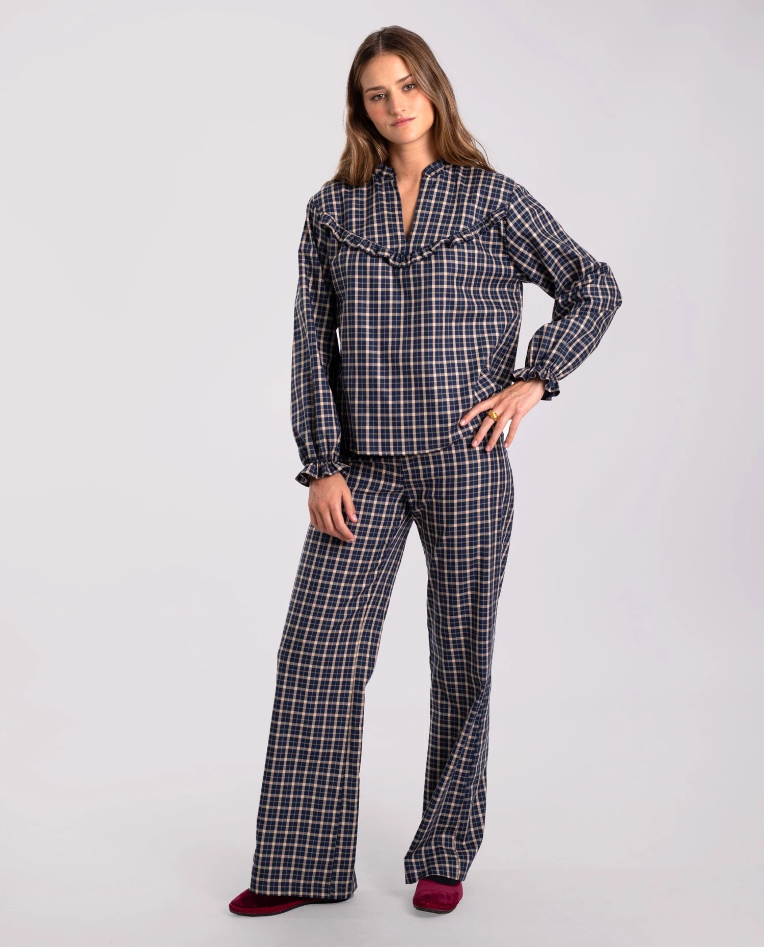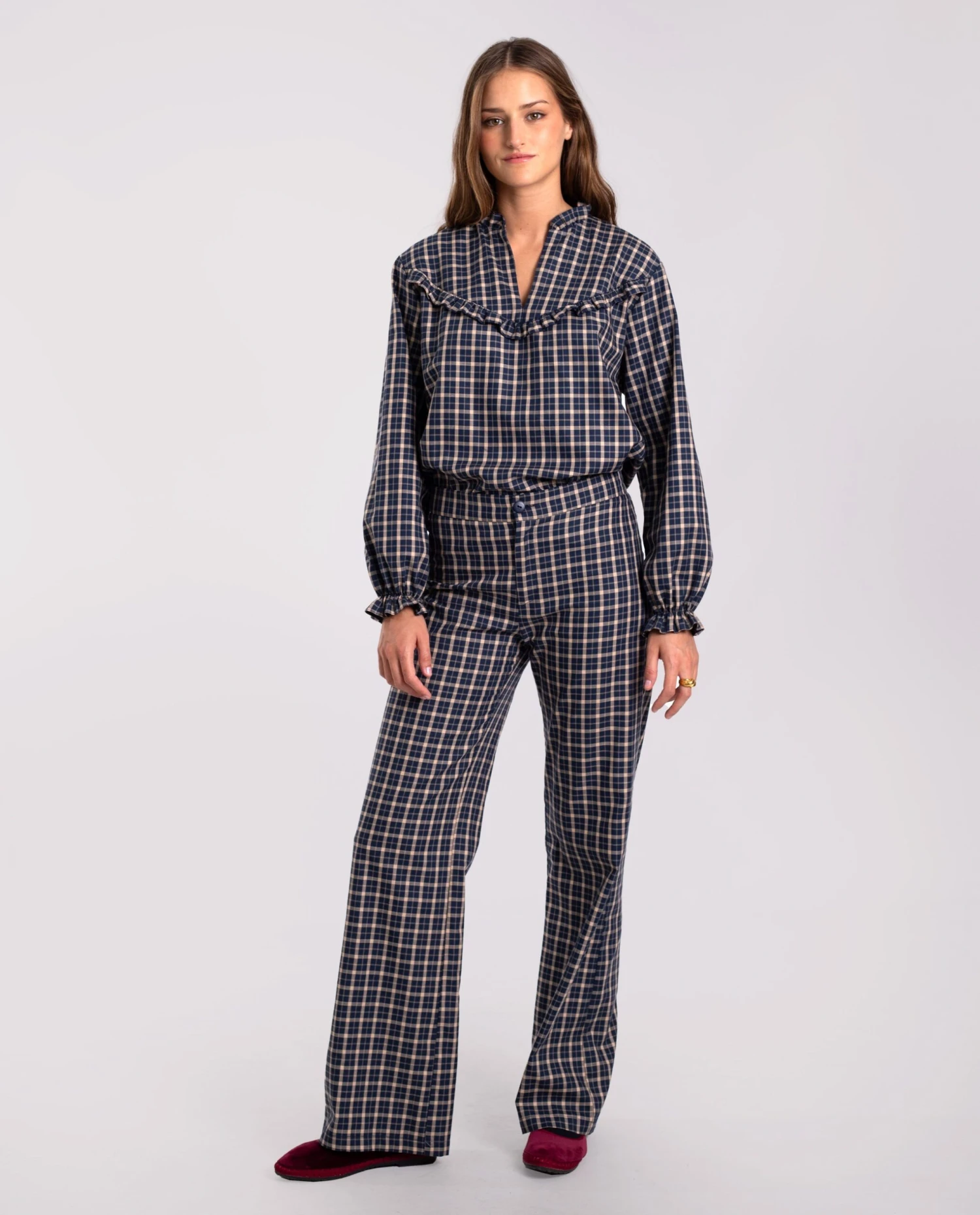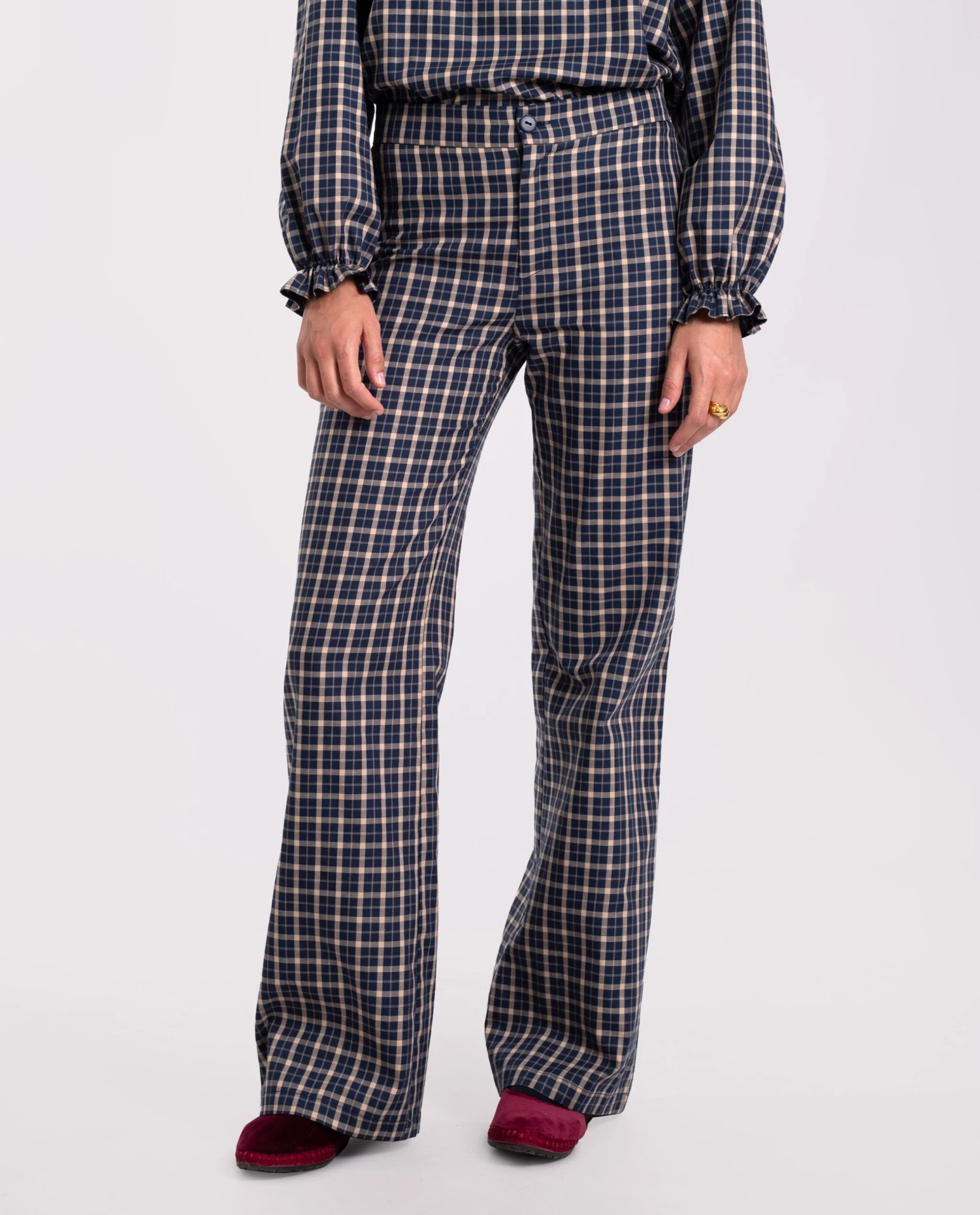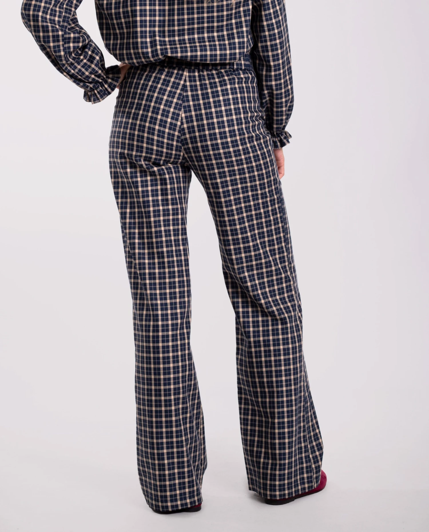 - Pantalón recto de cuadros.