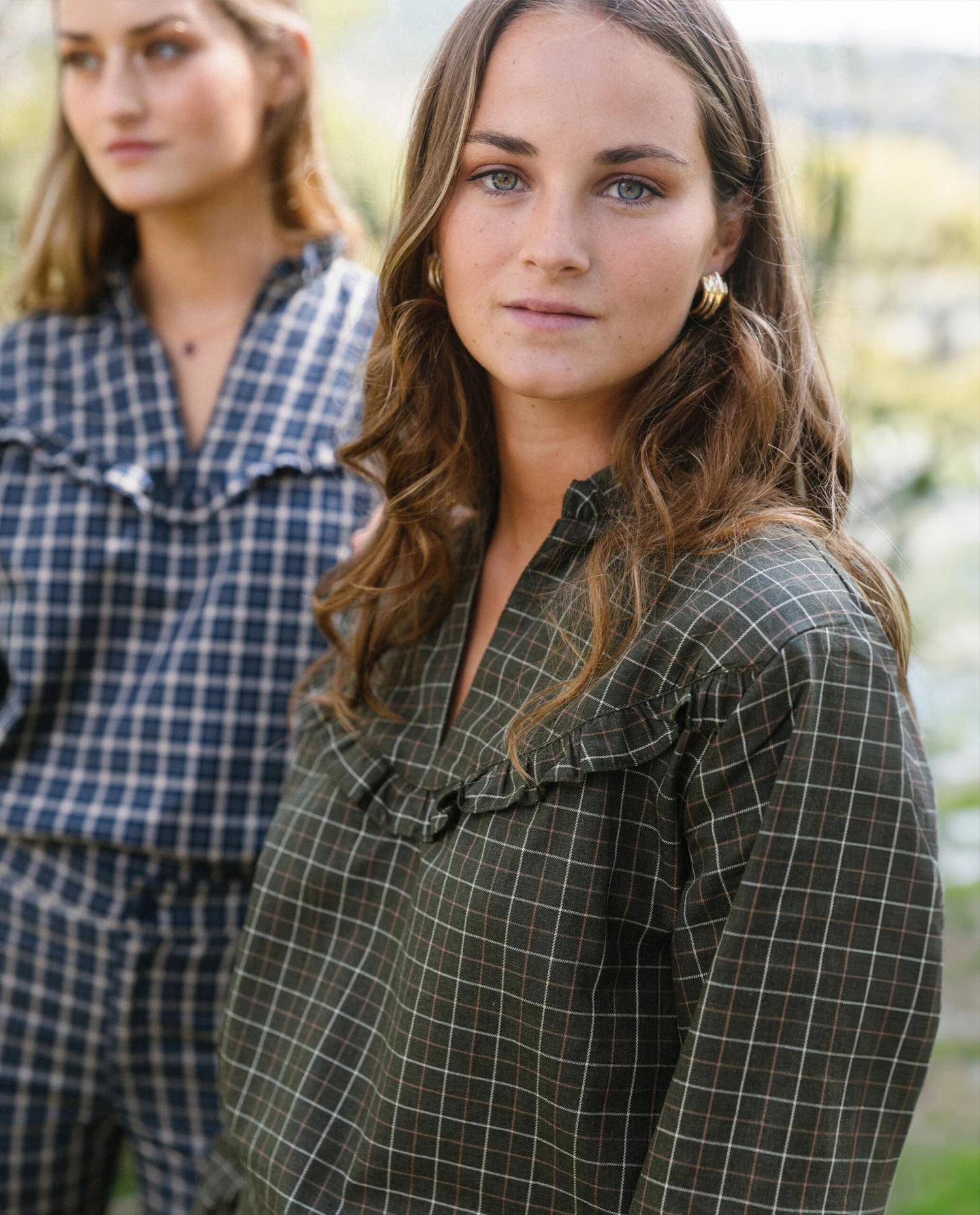 - Estampado de cuadros azul.