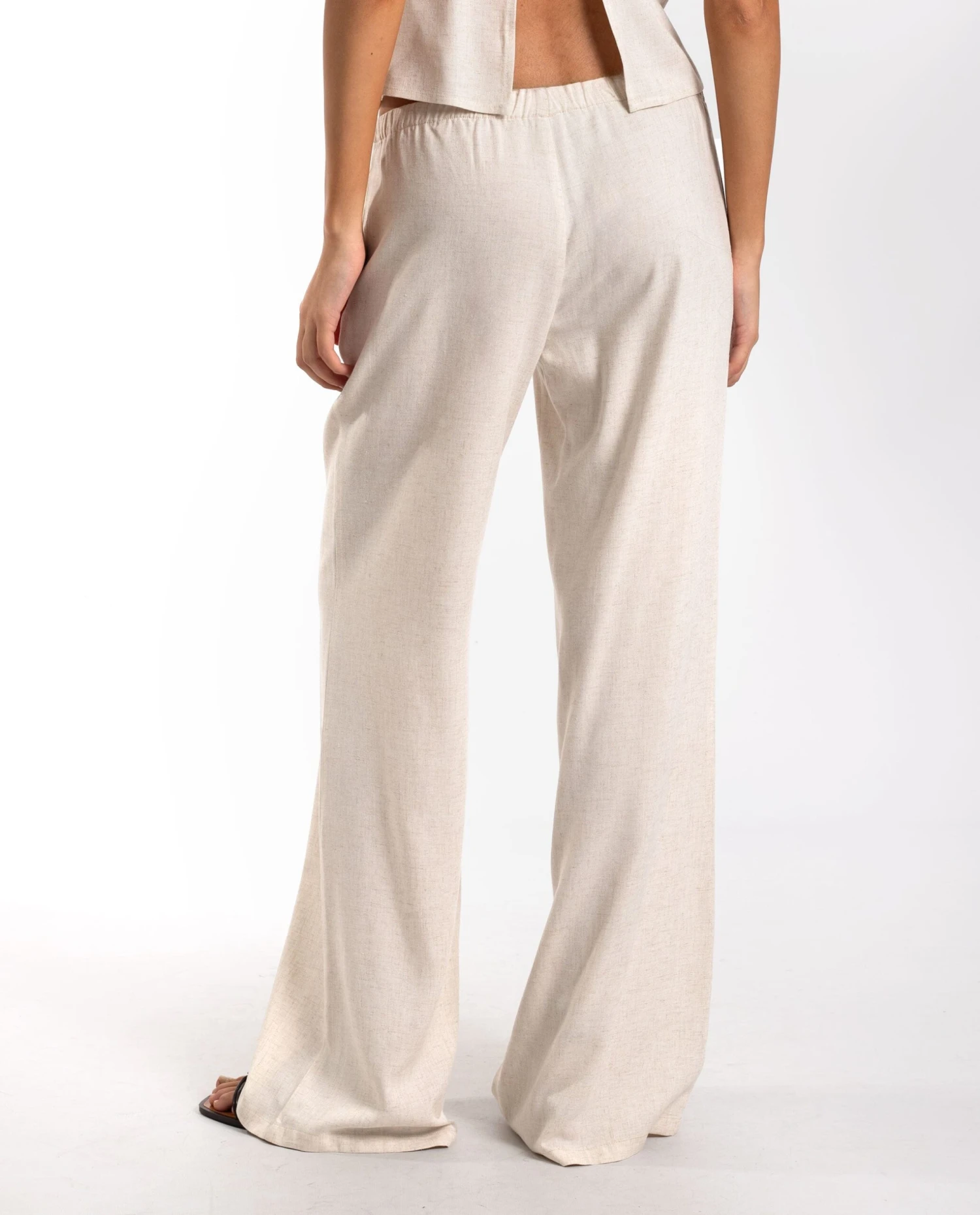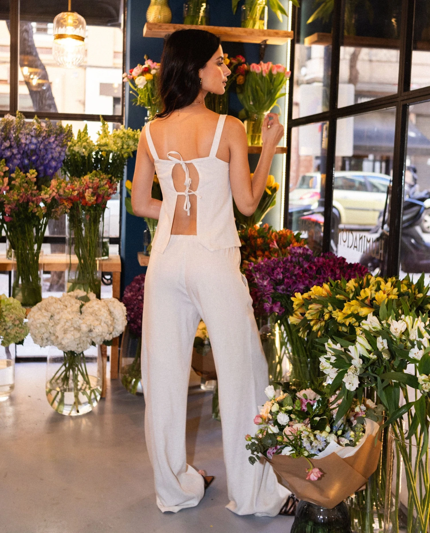 Pantalón fluido de lino.[readmore]El pantalón perfecto para ponerte durante todo el verano. Su corte fluido y su cintura elástica con lazada hacen que sea comodísimo y se adapte a tu cuerpo perfectamente. Llévalo con el top a conjunto para un look effortless. ¡Será un fondo de armario de los que nunca te fallarán!