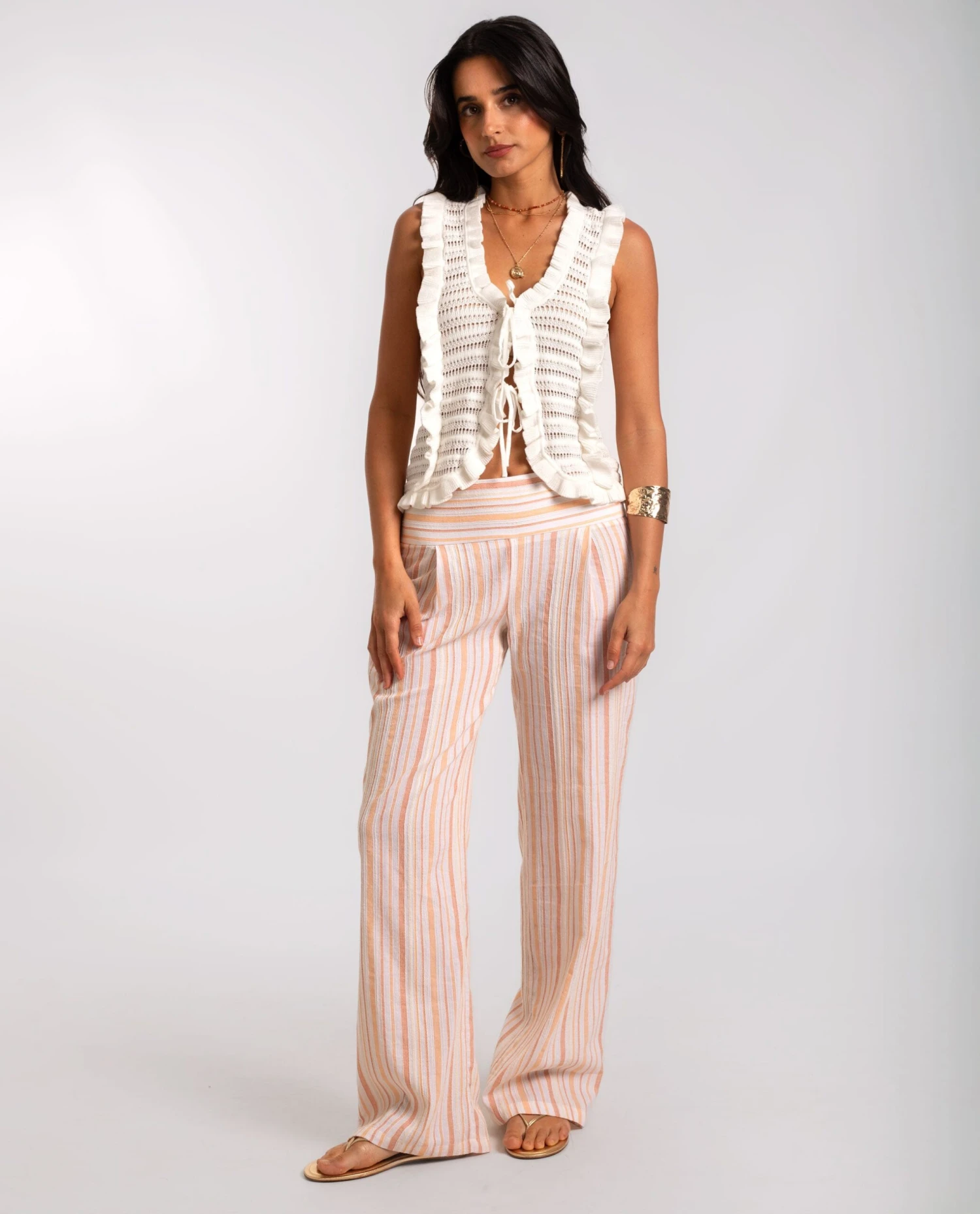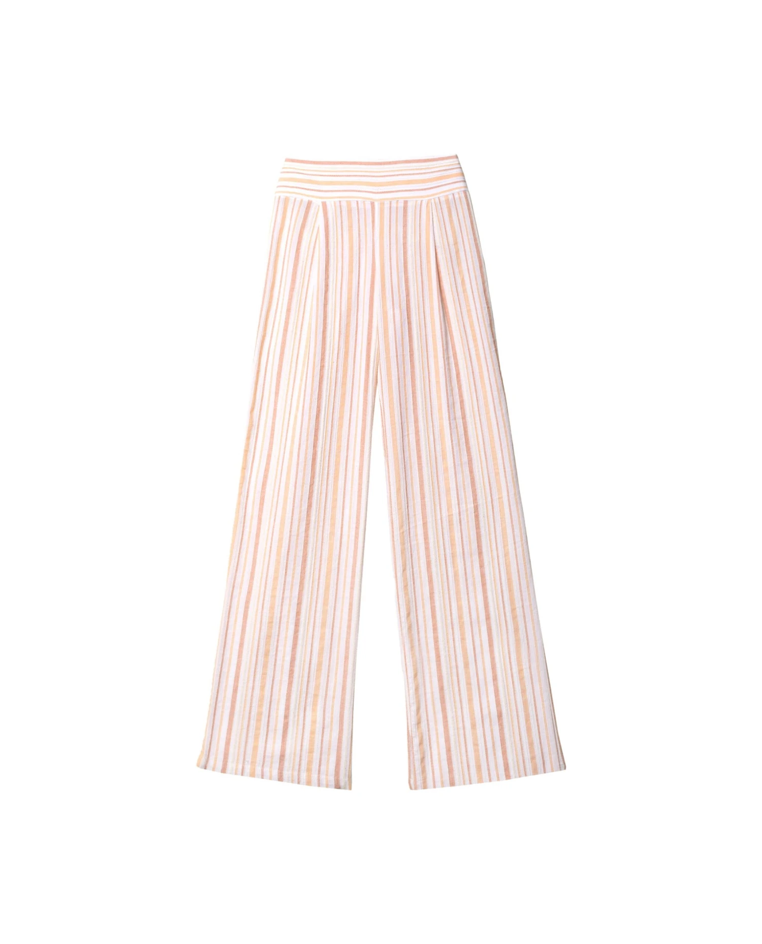 Pantalón de rayas de algodón con fit relajado.[readmore]Un pantalón de esos que usarás mil veces durante todo el verano y más. Tielo hace súper cómodo. La conturilla ancha con pliegues en el delantero marca la silueta sin apretar y la cremallera trasera queda completamente oculpa. Puedes llevar con un chaleco de punto o con tu bikini, ideal para looks de plata y de ciudad. ¡Te salvará cualquier look!