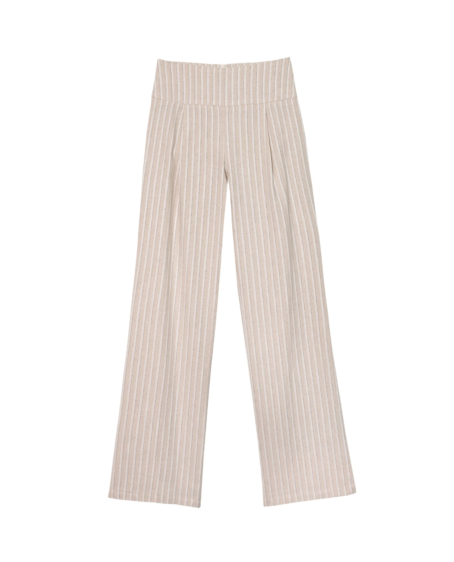 Pantalón beige de rayas largo.[readmore]Nos encanta este pantalón de lino porque es una de esas prendas cómodas para llevar a diario sin perder nada de estilo. Está confeccionado con un tejido rústico de rayas diplomáticas y lurex para aportar brillo. Es ligero, de talle alto y con canesú en la cintura para que se adapte perfectamente a ti y tenga ese efecto push up que tanto os gusta. No dejarás de ponértelos!