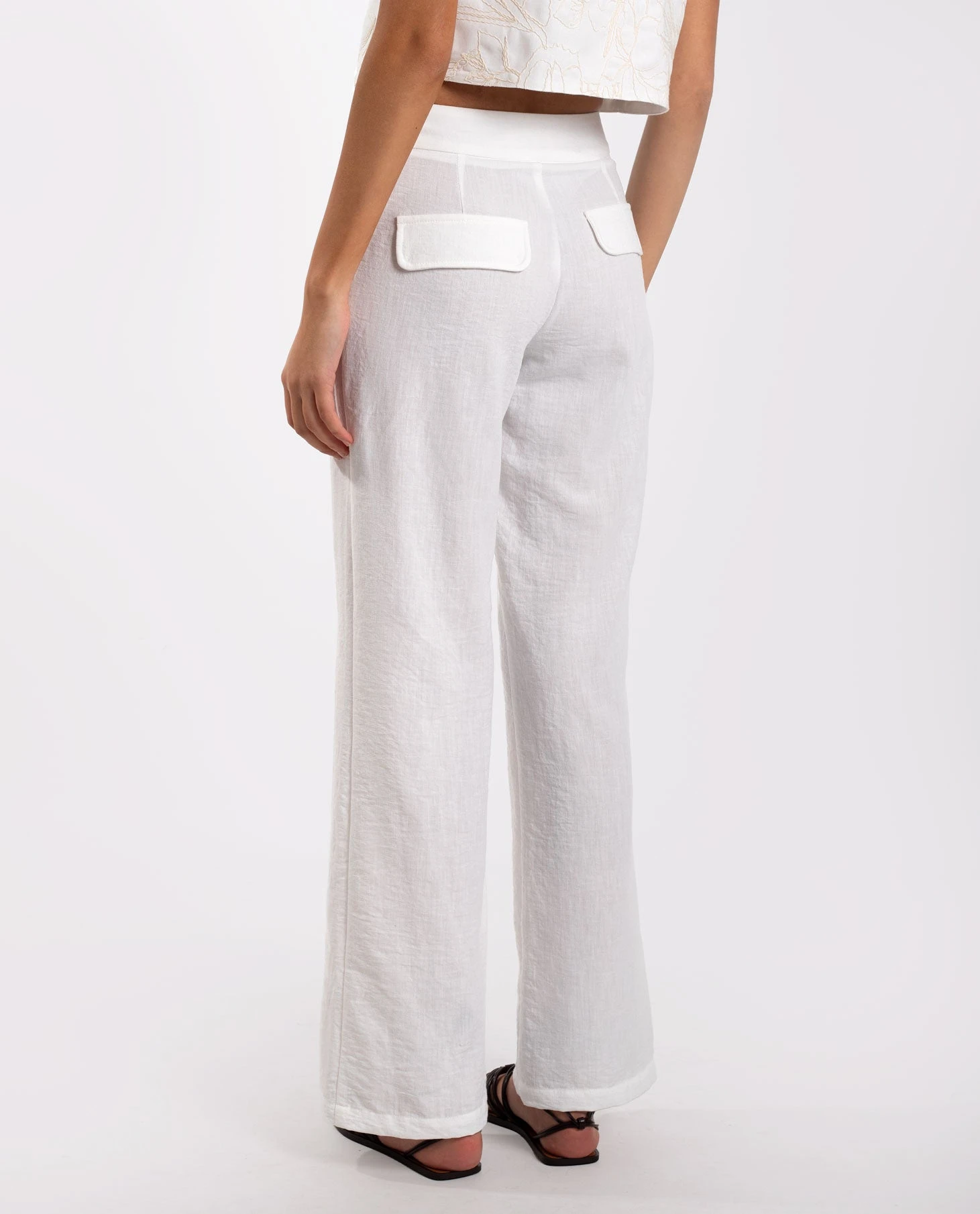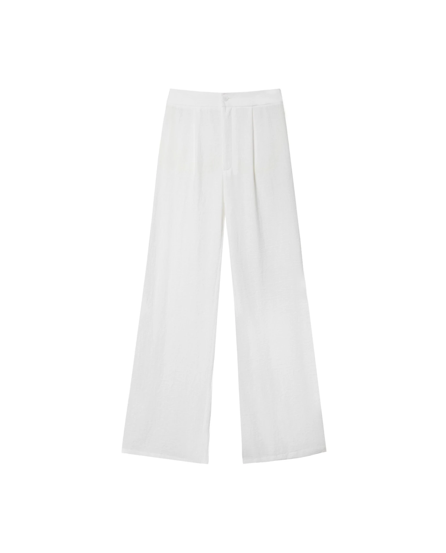 Pantalón blanco con corte fluido.[readmore]El pantalón que te vas a poner en bucle esta temporada. Tiene ese rollo effortless que queda bien con todo: tiro alto, pernera fluida y tejido ligero y fresquito. El cierre delantero con cremallera y botón le da un toque más pulido, así que puedes llevarlo tanto con sandalias planas como con plataforma si te apetece algo más vestido. Súmale un top de lino para un outfit de 10!