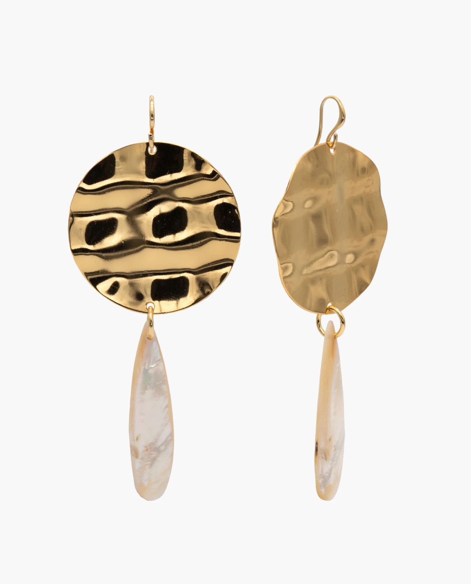 Pendientes medalla con gotas de nácar.[readmore]Estos pendientes no pueden ser más elegantes! Destacan por su medalla dorada con texturas de agua, reflejando un brillo precioso cuando le da la luz. Van acompañados de una piedra nácar natural con forma de gota, lo que aporta movimiento a los pendientes. Sin duda, uno de los pendientes más especiales y originales para llevar en tu próximo evento.