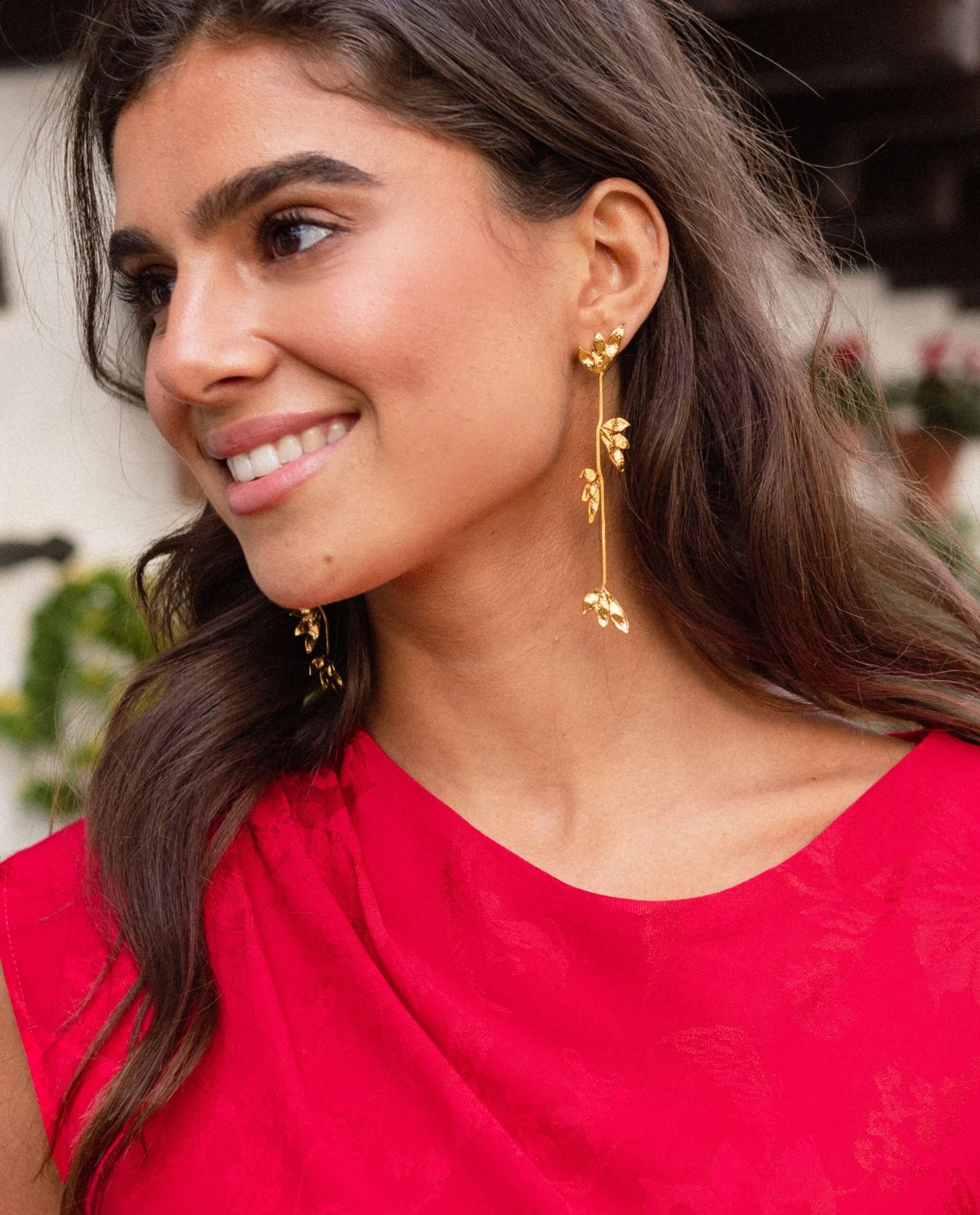 Pendientes de acero con motivos de hoja.[readmore]Si buscas unos pendientes con movimiento y un diseño especial, estos son para ti. Su estructura en cadena con detalles de hojas crea un efecto fresco y elegante, perfecto para elevar cualquier look. Además, son súper ligeros, por lo que puedes llevarlos cómodamente todo el día. Son de acero inoxidable con baño de oro de 18kt, por lo que tienen una luz preciosa.