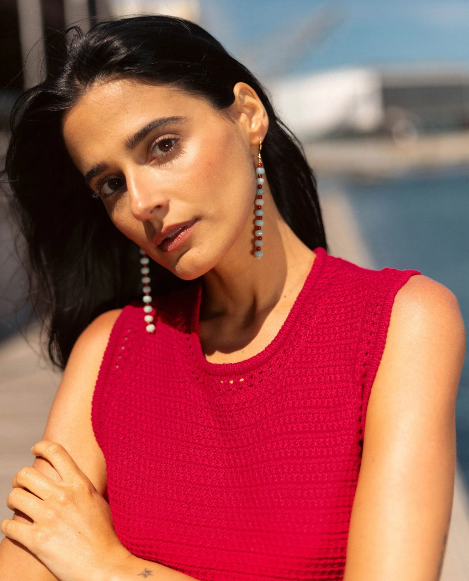 Pendientes largos con piedras naturales.[readmore]Los pendientes perfectos para dar el toque especial a cualquier look. Con 10 cm de largo, combinan piedras de amazonita y cornalinas, creando un juego de color súper favorecedor. Son muy ligeros, así que los podrás llevar durante horas sin notar que los llevas puestos. El baño dorado sobre acero inoxidable los hace resistentes y duraderos. Quedarán genial tanto para eventos como para looks más casuales.