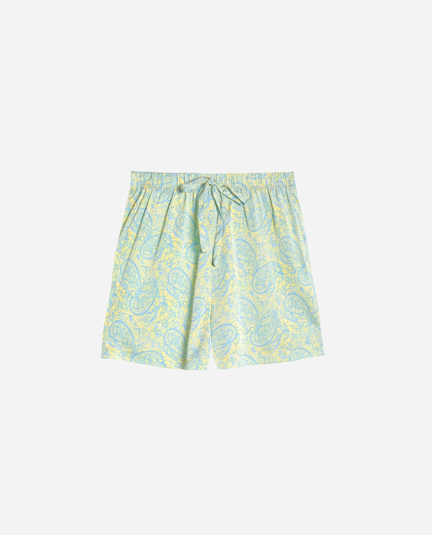 Pijama estampado paisley amarillo y cian colección THE-ARE x @mariafrubies.[readmore]Pantalón de pijama corto con estampado paisley amarillo y cian. Combínalo con la Camisa Corta del Pijama Yellow Disorder.