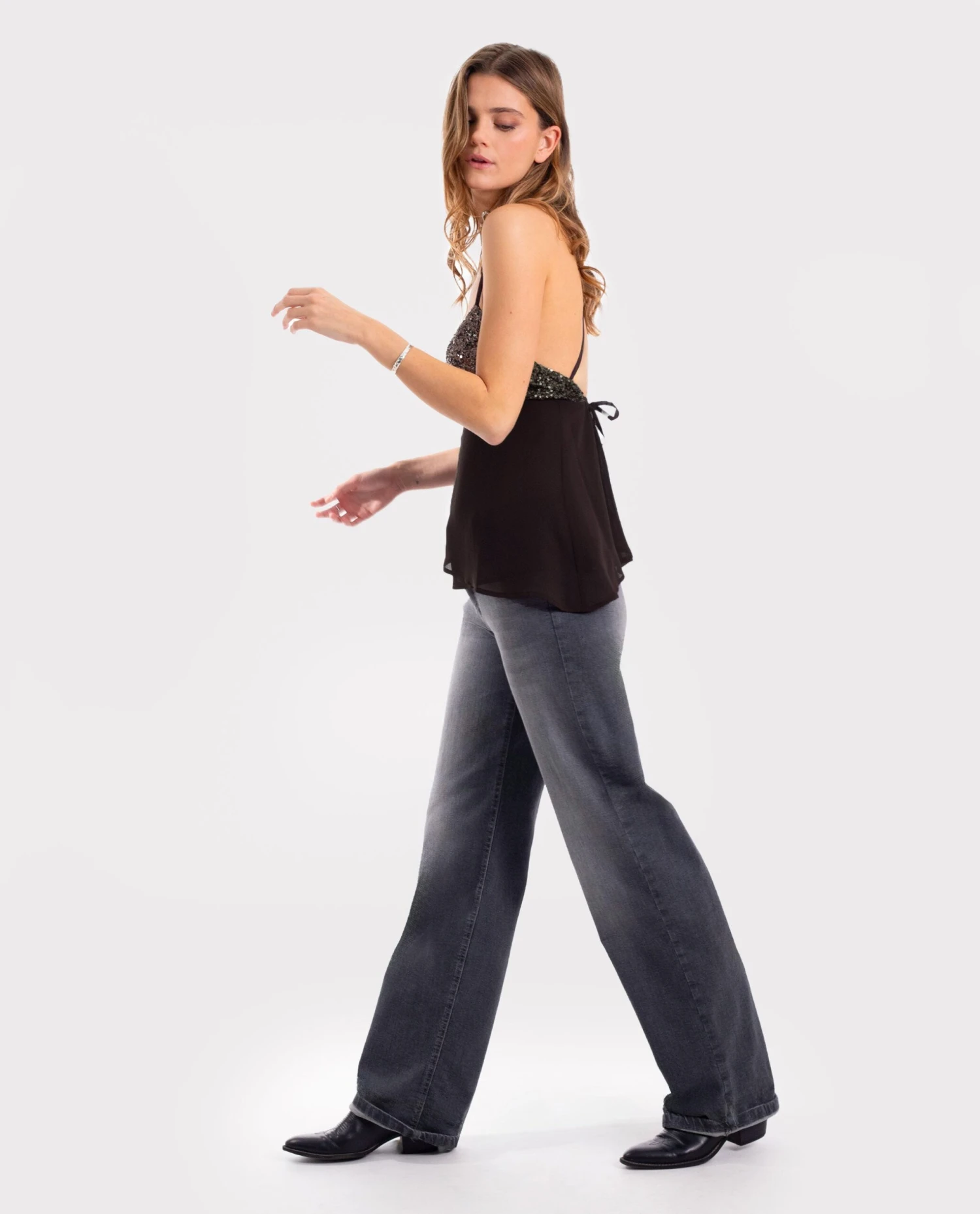 Top de tirantes con lentejuelas y gasa.[readmore]Nuestro diseño más buscado vuelve para convertirse en tu imprescindible esta temporada. Combina las lentejuelas con un cuerpo de gasa semitransparente y bajo asimétrico que favorece muchísimo la silueta. La espalda abierta, con tirantes cruzados y ajustables, le dan el toque atrevido. Su color plomo hace que combine con todo, convirtiéndolo en la prenda perfecta para tus looks de fiesta. En cuanto lo tengas en tus manos verás lo especial que es!✨