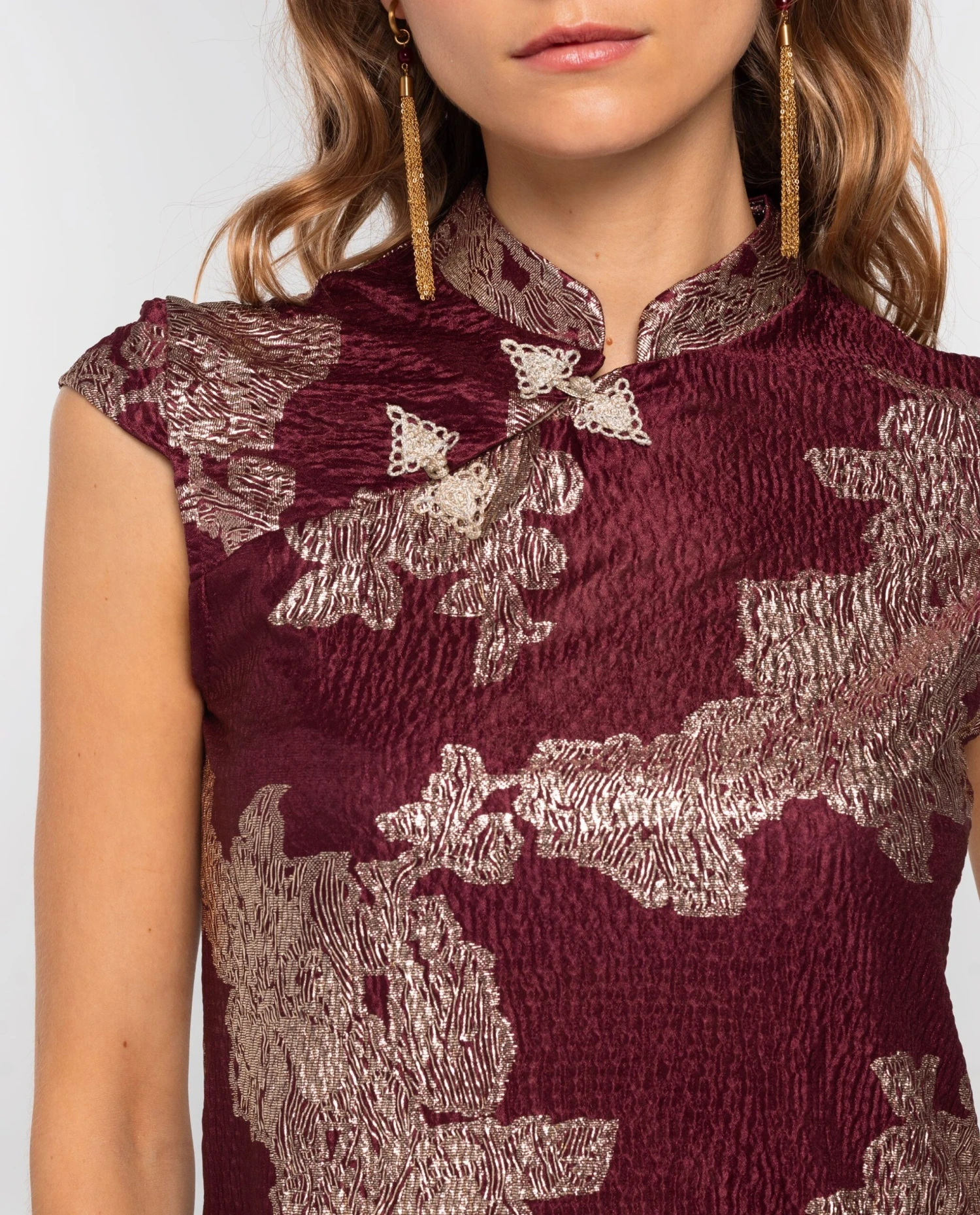 - Top con abertura lateral de alamares.
