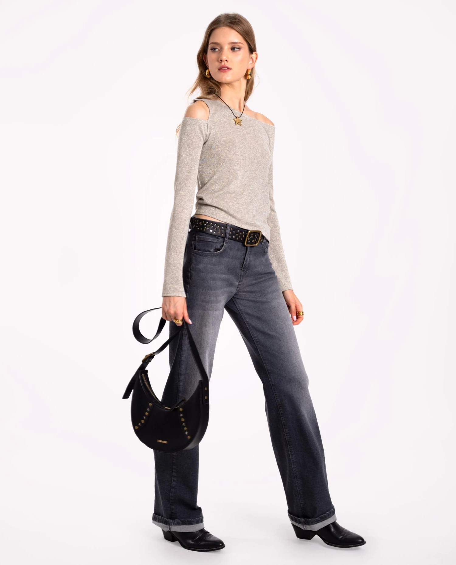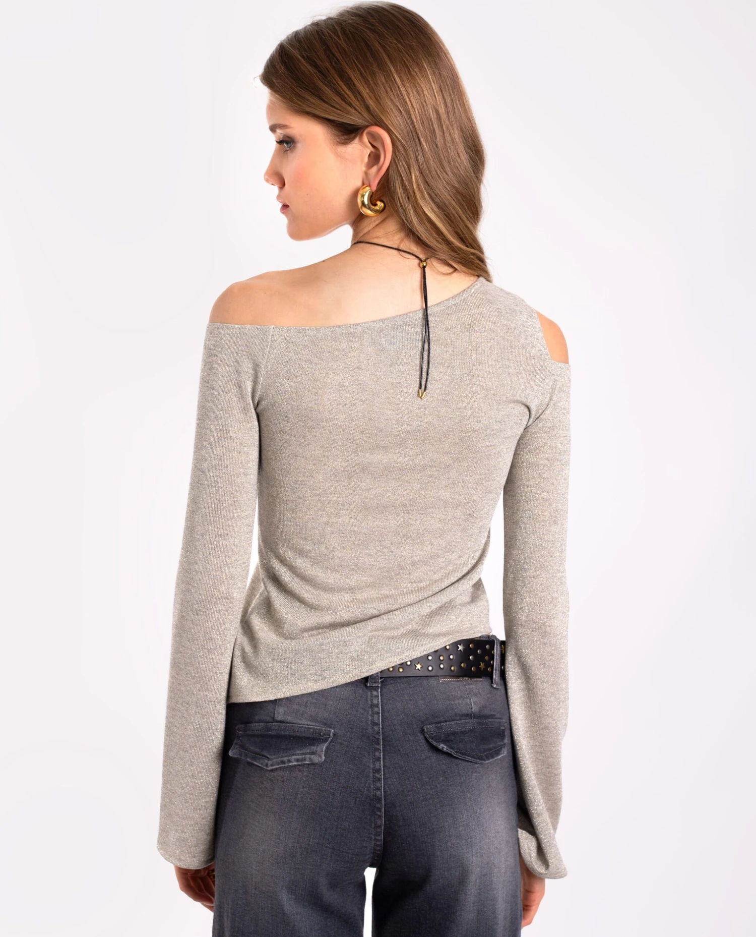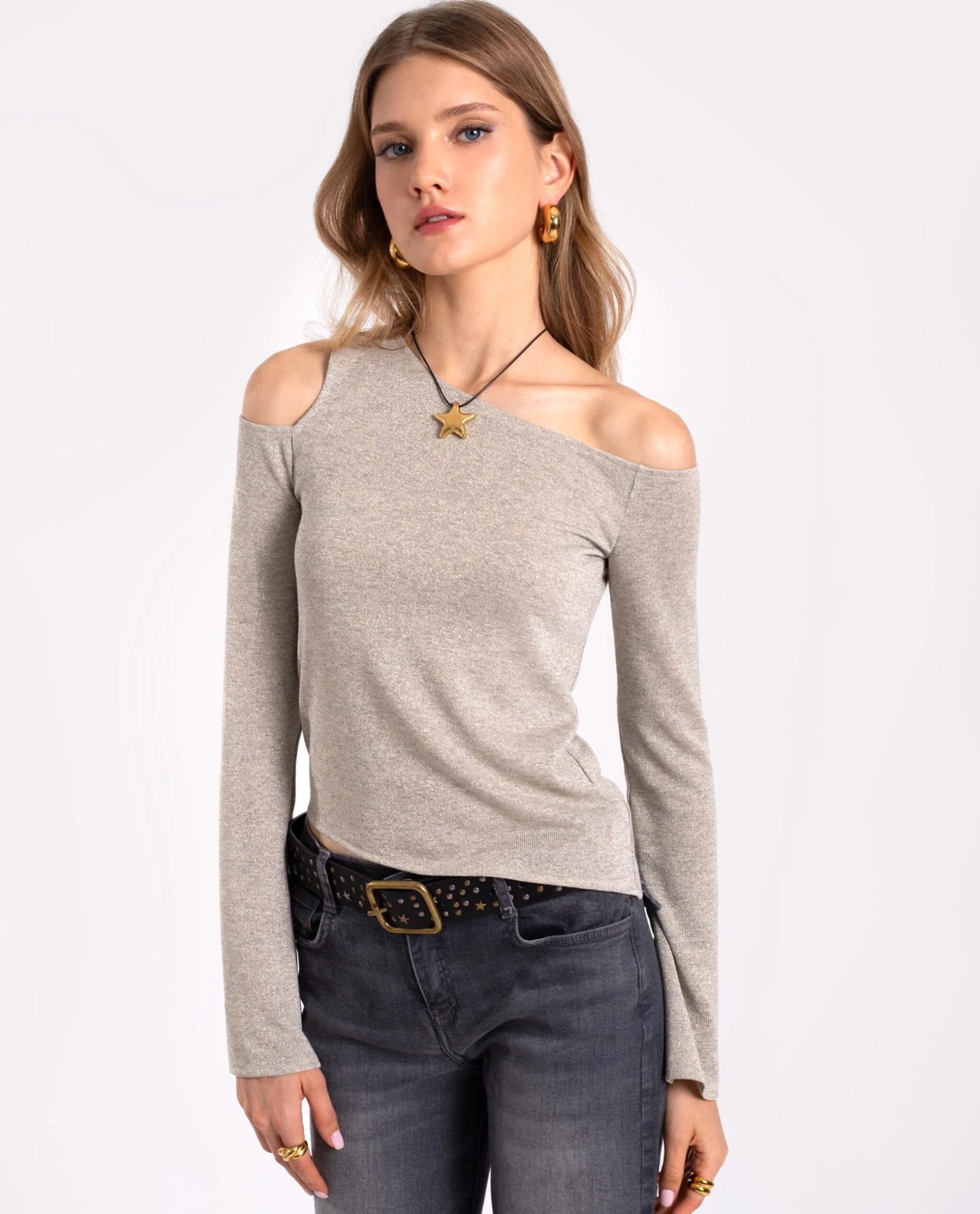 Top de punto con brillo y escote asimétrico.[readmore]Este top es una de nuestras piezas favoritas por su versatilidad, perfecto tanto para el día a día como para eventos especiales. Confeccionado en punto canalé elástico con mucho brillo, destaca por su diseño entallado que favorece la silueta sin perder comodidad. Tiene el escote asimétrico con un elegante cut out en el hombro derecho y las mangas ligeramente acampanadas. ¡Consigue el total look con unos vaqueros, accesorios dorados y zapatillas!
