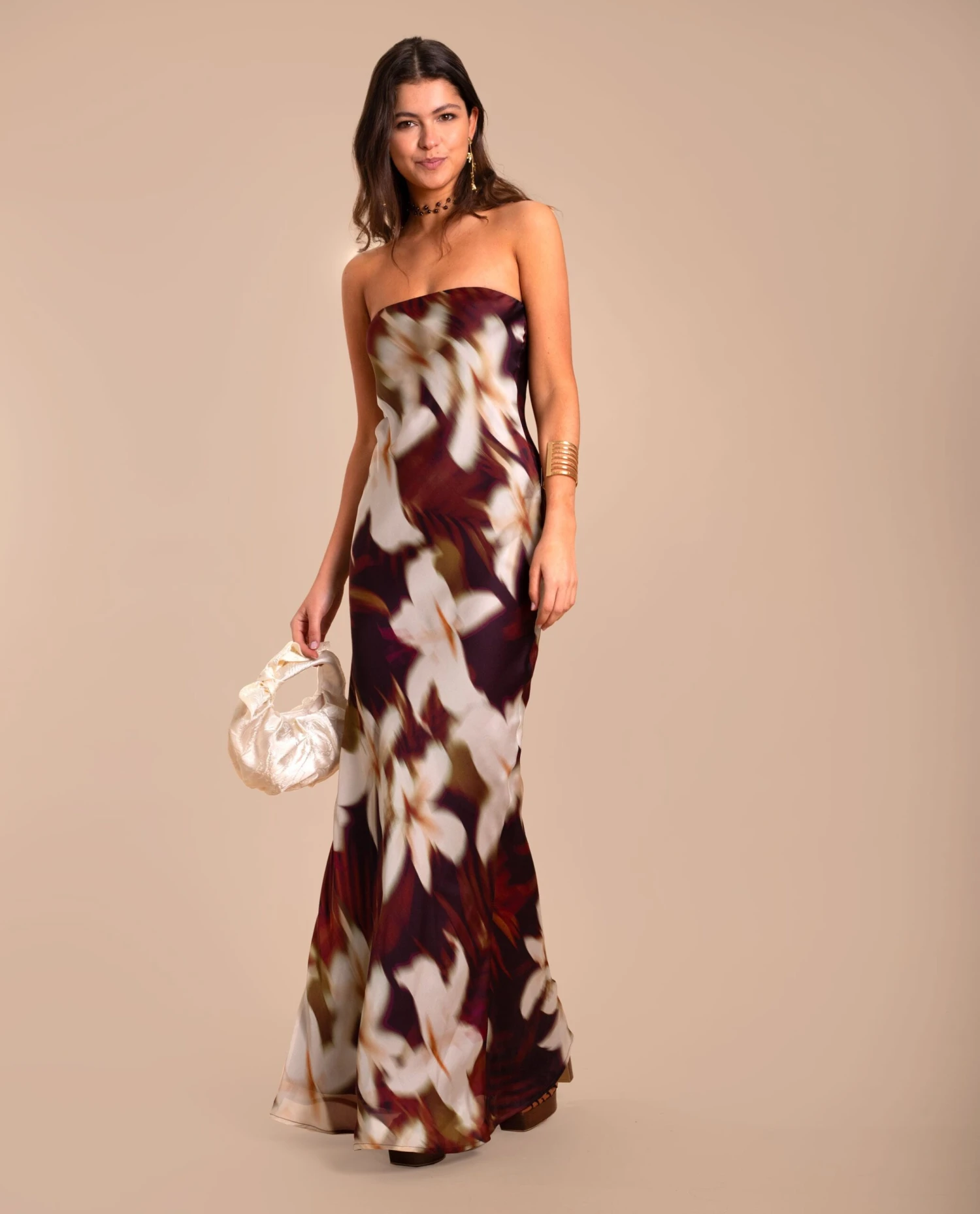 Vestido midi palabra de honor estampado.[readmore]El vestido Adriana es la elección perfecta si buscas un diseño elegante y original. Su estampado floral combina los tonos de la temporada: marrón y beige. Está cortado al bies por lo que se ajusta de forma sutil, creando una silueta muy favorecedora. Su escote palabra de honor deja los hombros totalmente al descubierto, aportando ese toque atrevido y favorecedor que nos encanta. Ideal para combinar con sandalias de tacón y destacar en cualquier ocasión especial.