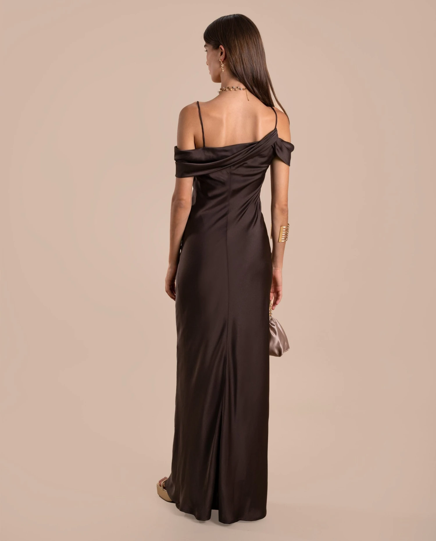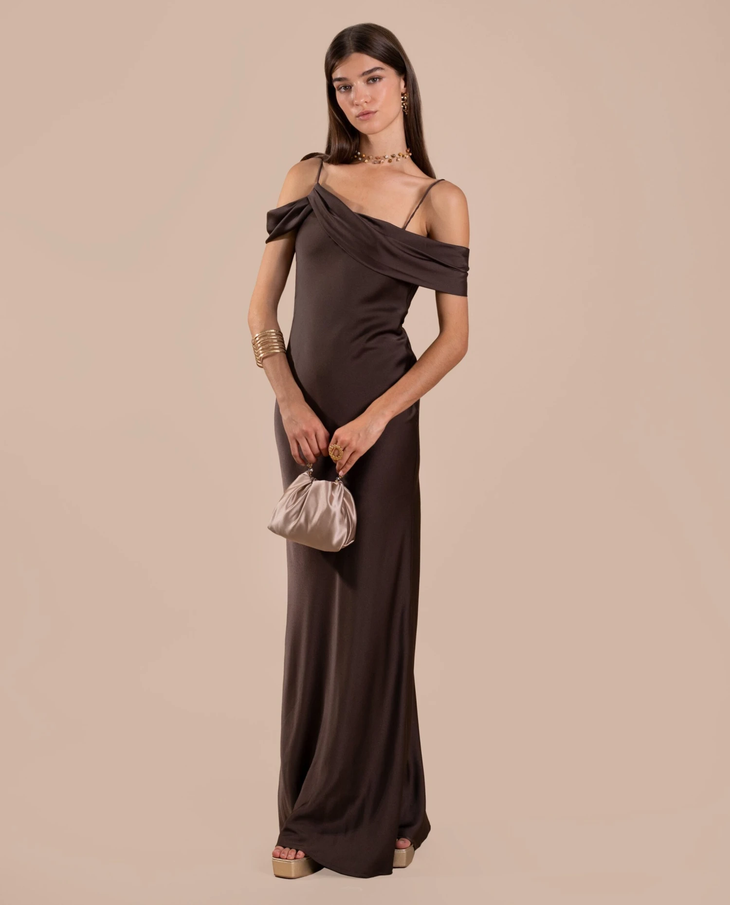 Vestido largo satén de tirantes con escote drapeado.[readmore]La sencillez de este vestido y sus detalles lo convierten en un diseño único, es por eso que se ha convertido ya en uno de nuestros favoritos para vestir en un evento especial. El Vestido Córdoba destaca por su tejido satinado en color marrón que, al estar cortado al bies, hace que tenga una caída y un movimiento precioso al andar. El escote drapeado deja los hombros al descubierto y va acompañado de un tirante izquierdo que puedes quitar para dejarlo completamente asimétrico. Este es uno de esos vestidos de invitada con los que sentirás que no necesitas nada más para ir perfecta.✨