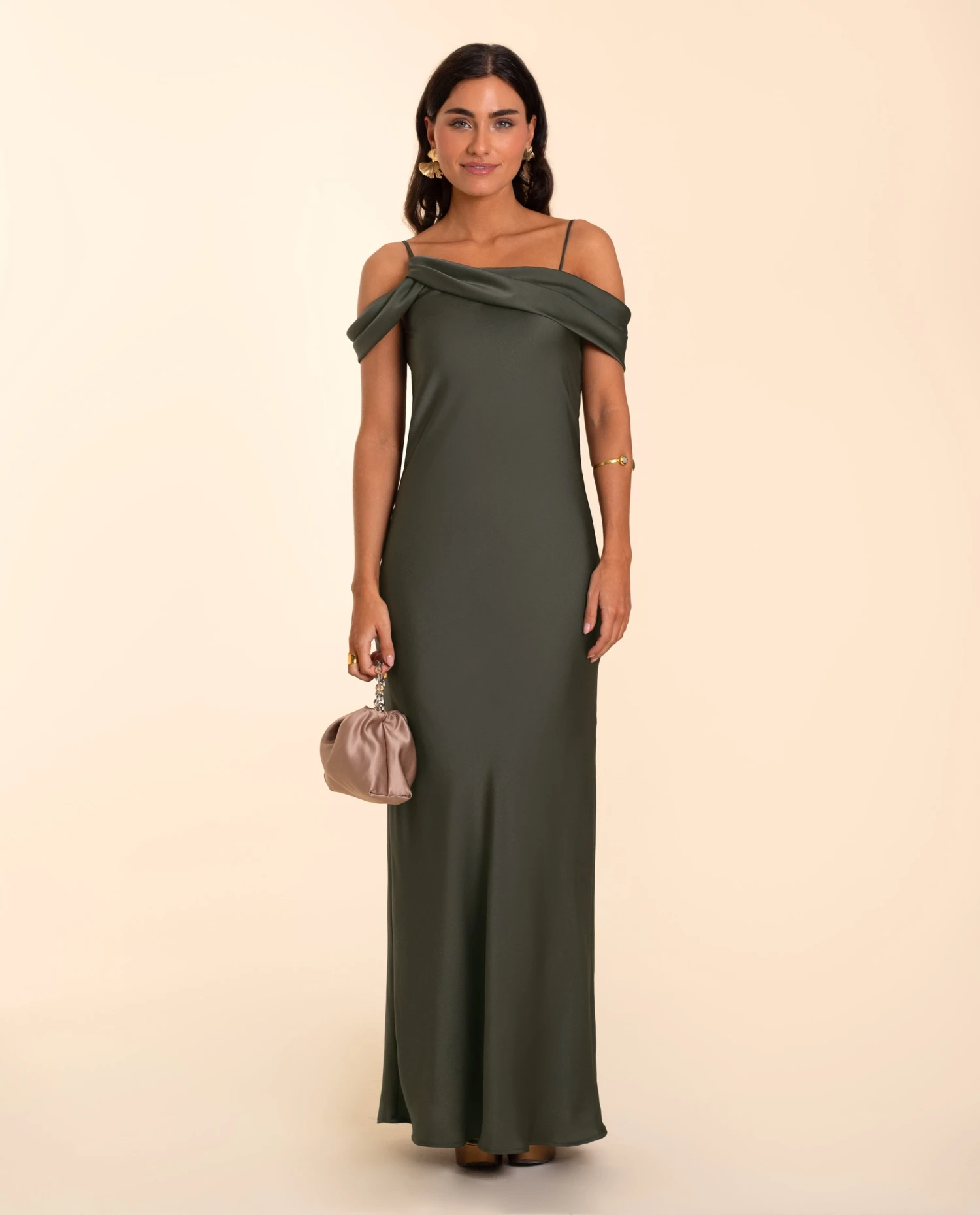 Vestido largo satén de tirantes con escote drapeado.[readmore]La sencillez de este vestido y sus detalles lo convierten en un diseño único, es por eso que se ha convertido ya en uno de nuestros favoritos para vestir en un evento especial. El Vestido Córdoba destaca por su tejido satinado en color verde empolvado que, al estar cortado al bies, hace que tenga una caída delicada y un movimiento precioso al andar. El escote drapeado deja los hombros al descubierto y va acompañado de un tirante izquierdo que puedes quitar para dejarlo completamente asimétrico. Este es uno de esos vestidos de invitada con los que sentirás que no necesitas nada más para ir perfecta.✨