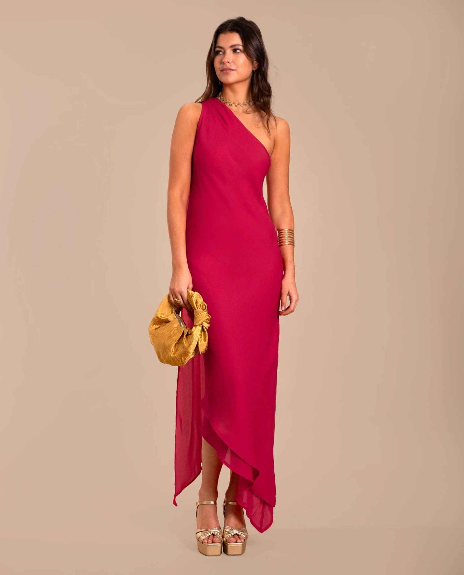 Vestido midi rosa con escote y bajo asimétrico.[readmore]Un vestido con el que triunfarás en cualquier evento de la temporada es este vestido midi asimétrico con lazada al cuello y confeccionado en un rosa cereza que sienta espectacular a todo tipo de pieles. El tejido es una doble gasa con mucha caída y gracias a su bajo asimétrico y fular al tono este vestido tiene un movimiento increíble al caminar. El color combina a la perfección con unas sandalias platino y complementos en dorado. Es uno de esos diseños con los que te verás muy estilizada y elegante.