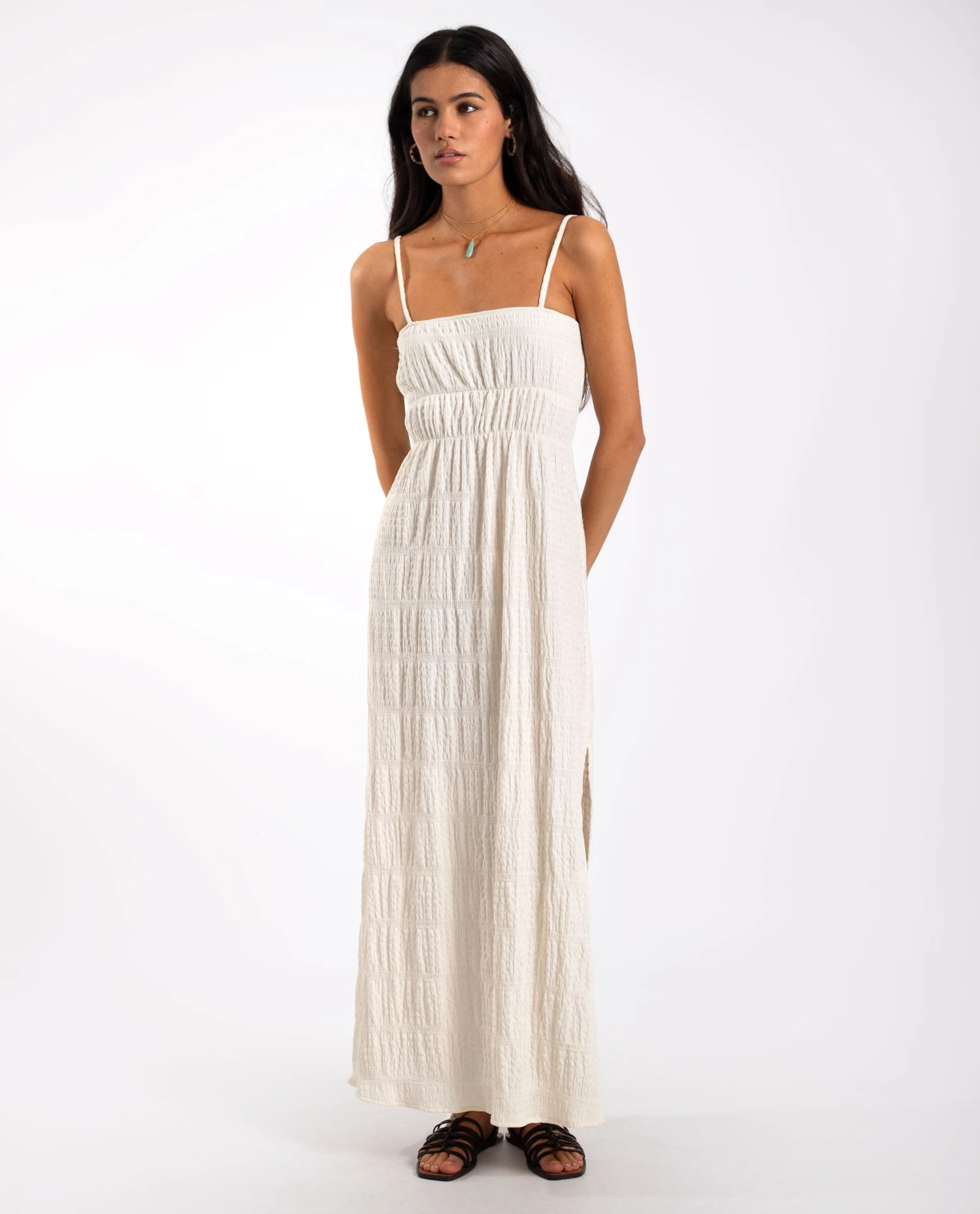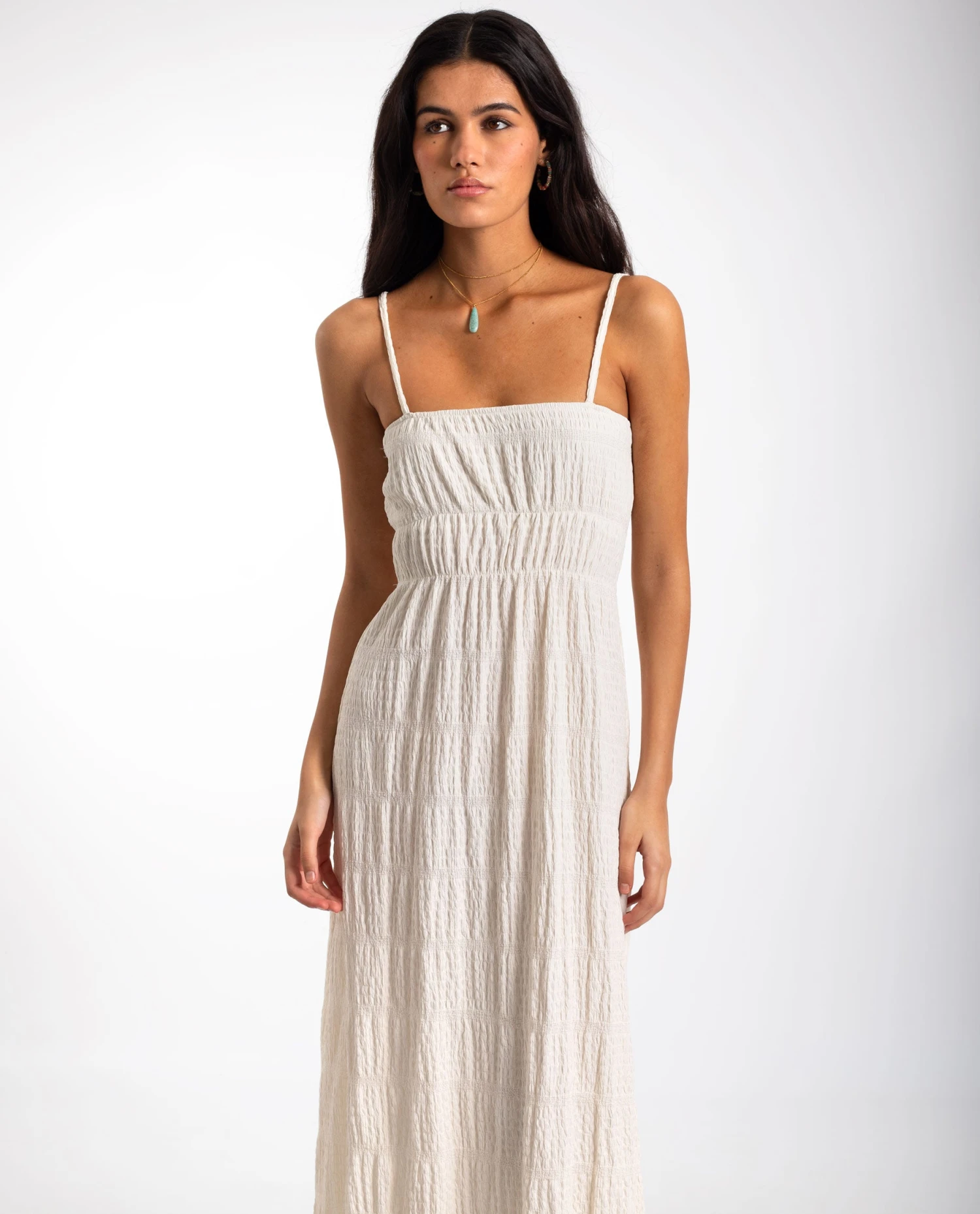 Vestido largo palabra de honor en color crudo.[readmore]El vestido que querrás llevar todo el verano. Su escote palabra de honor con tirantes regulables te permite ajustarlo a tu medida, mientras que su tejido con textura le da un toque especial. El corte y la textura le da movimiento y frescura a la prenda, perfecta para días de calor. Llévalo con sandalias planas para un look casual o con tus botas cowboy favoritas para un extra de estilo.