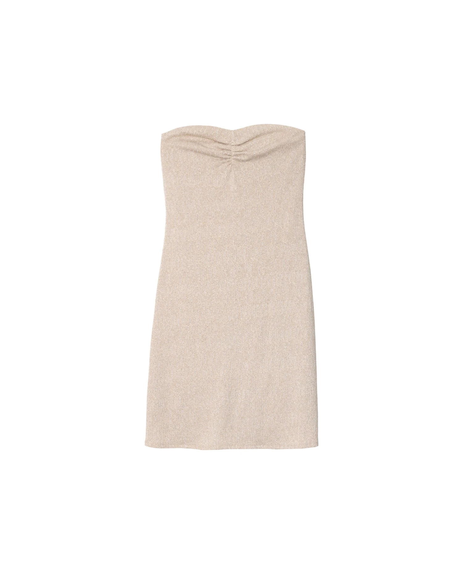 Vestido corto palabra de honor con brillo.[readmore]Este diseño nos transporta directamente a los mejores momentos del verano. En esta colección hemos apostado por el brillo y para este vestido corto hemos elegido un tejido que no puede ser más especial: punto elástico con hilo de lurex dorado hecho en España. Este vestido de corte evasé sienta increíble, con los hombros al descubierto y el detalle fruncido en el pecho. No tardes en hacerte con él porque va a volar!