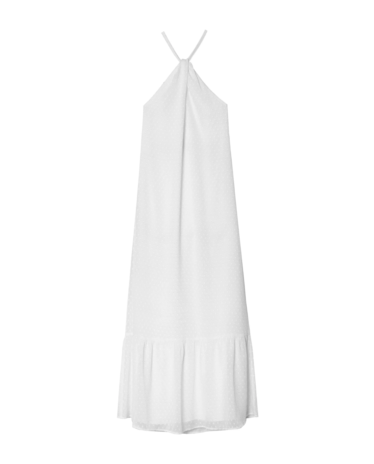 Vestido midi plumeti blanco con escote halter cruzado y espalda baja.[readmore]Uno de los vestidos de invitada más especiales para arrasar en cualquier evento.😍El tejido plumeti es ideal, con pequeños puntos en relieve y un nudo en el escote que favorece mucho. Imagínatelo morena! Tiene la espalda descubierta y un volante en el bajo para que tenga mucho movimiento al caminar. Es el vestido perfecto para combinar de mil formas y llevar en diferentes ocasiones, ya sea con una sandalia de tacón o una sandalia plana para verano.