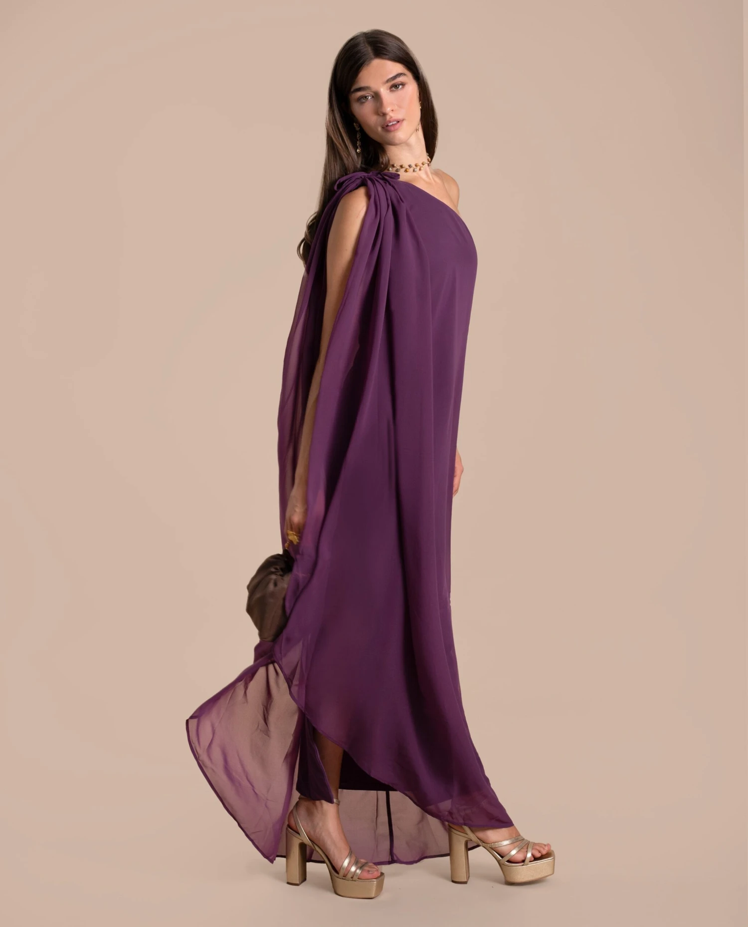 Vestido largo fluido con capa asimétrica.[readmore]Una de las piezas más especiales de la colección de invitada por su forma, diseño y tejido. Confeccionado en doble gasa, ofrece un elegante movimiento y un ajuste cómodo que no marca, ideal para tus eventos más especiales. El efecto capa es uno de los elementos más buscados en invitadas, así que nuestro equipo de diseño lo ha incorporado en versión multiposición. Gracias a la lazada en el hombro, puedes ajustar la capa y llevarla como manga abierta o tipo tirante, adaptándolo a tu estilo.