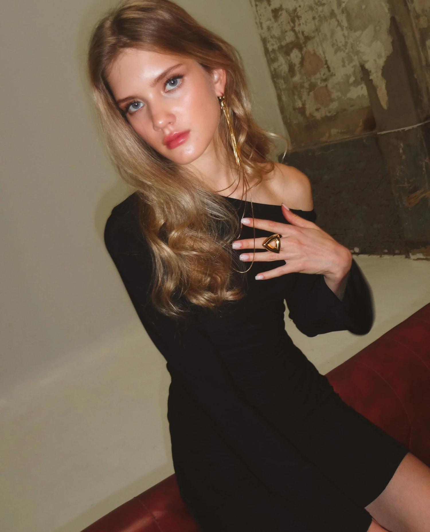 - Escote asimétrico bardot.