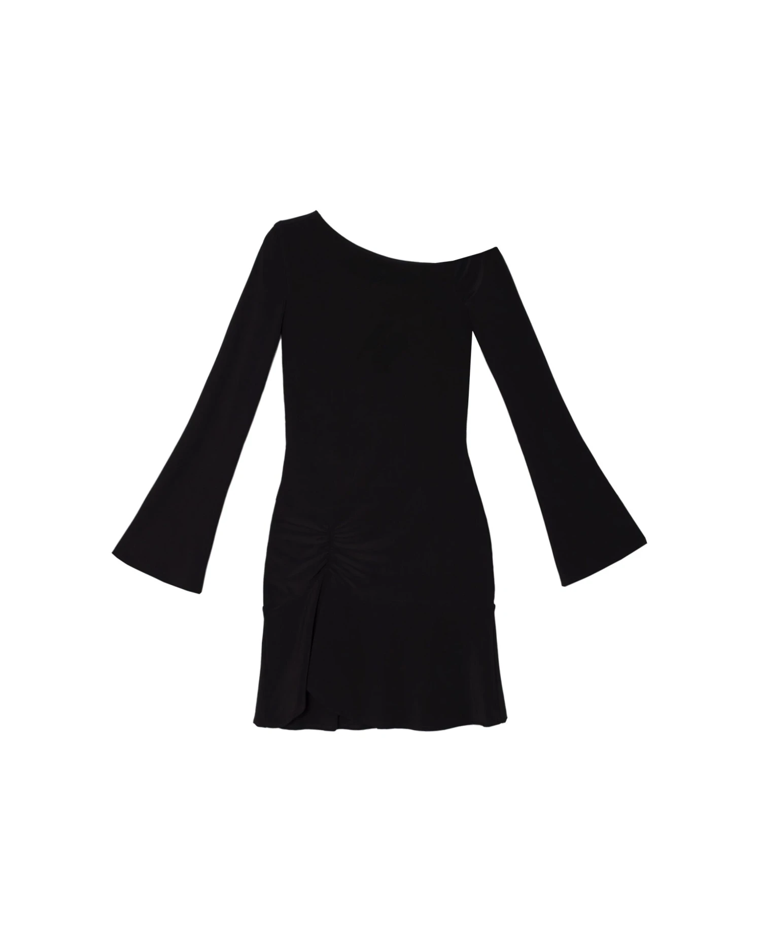 Vestido negro corto de manga larga con fruncido delantero.[readmore]El clásico little black dress se reinventa en esta versión imprescindible para cualquier armario. Además de ser muy versátil, sus detalles lo hacen muy favorecedor. El fruncido delantero, que forma un bajo asimétrico con un ligero vuelo, le aporta movimiento y ese toque original. Puedes ajustar el frunce en la cadera para modificar su longitud, adaptándolo a tu estilo. Su tejido elástico y el forro doble garantizan comodidad y un ajuste perfecto que realza la silueta. Te encantará cómo sienta en cuanto te lo pruebes!
