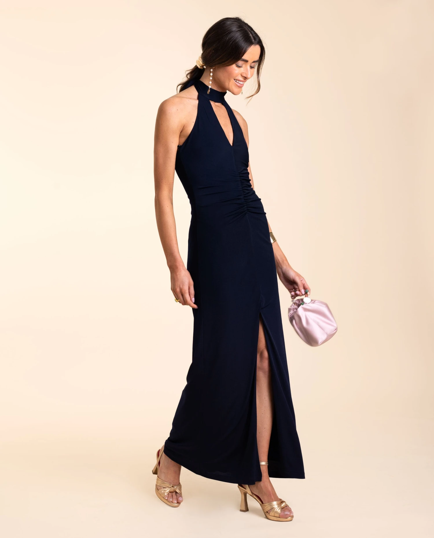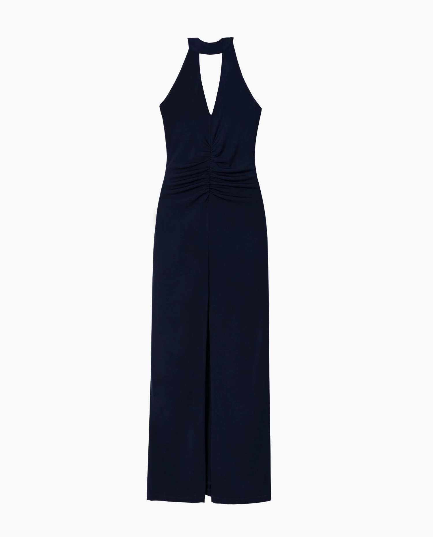Vestido midi halter con drapeado delantero.[readmore]No te puedes imaginar lo bien que sienta hasta que te lo pruebas.😍 Este vestido midi ajustado está confeccionado en un tejido de punto elástico en azul marino muy elegante y cómodo, perfecto para eventos de noche. Tiene un diseño súper especial, con el cuello halter y escote de pico, y un drapeado delantero que estiliza la silueta. Lo puedes combinar con accesorios dorados o plata para un look sofisticado o combinarlo con complementos coloridos para conseguir un look original.