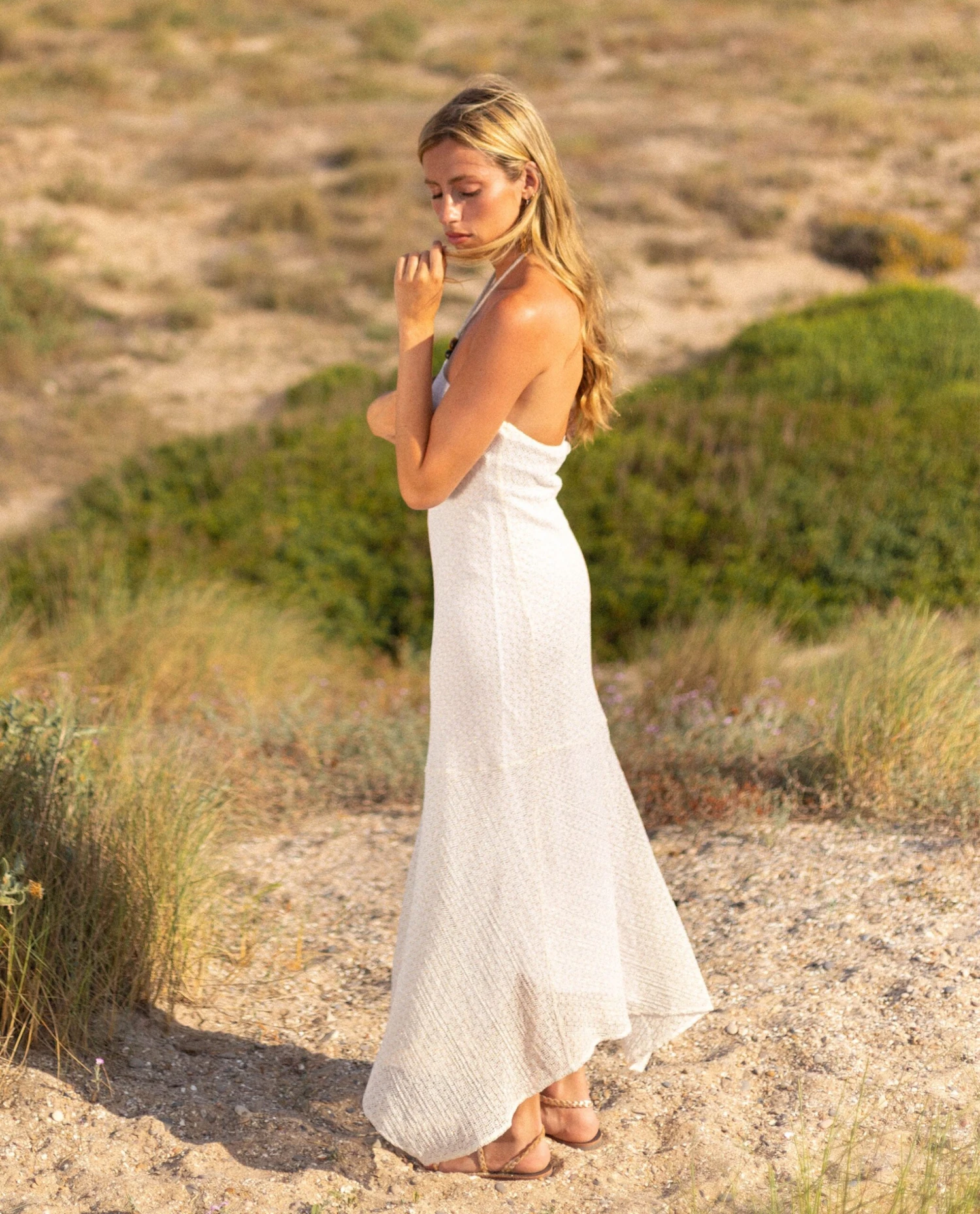 - Vestido largo blanco.