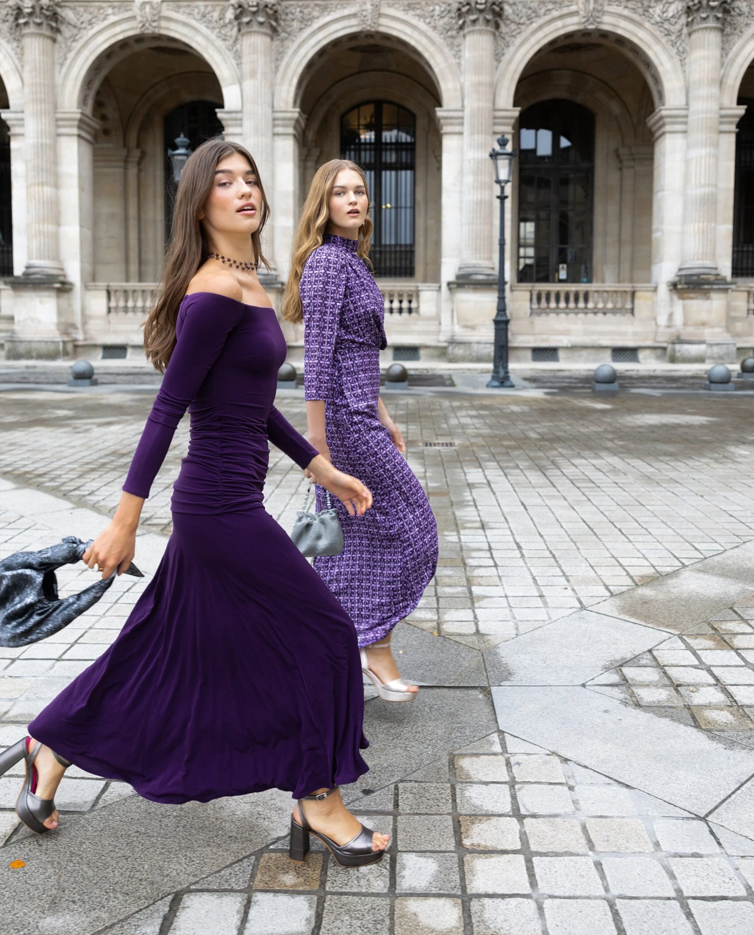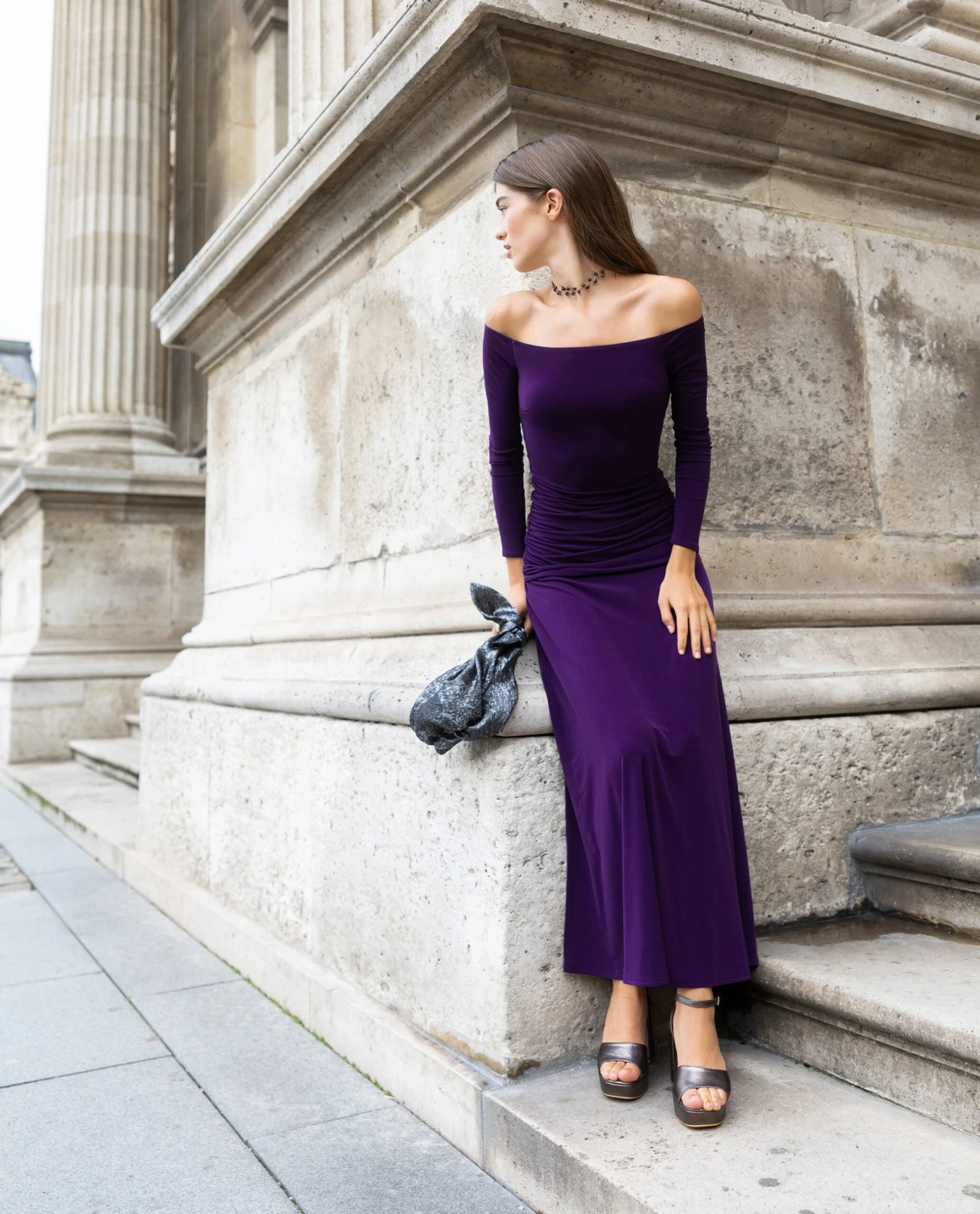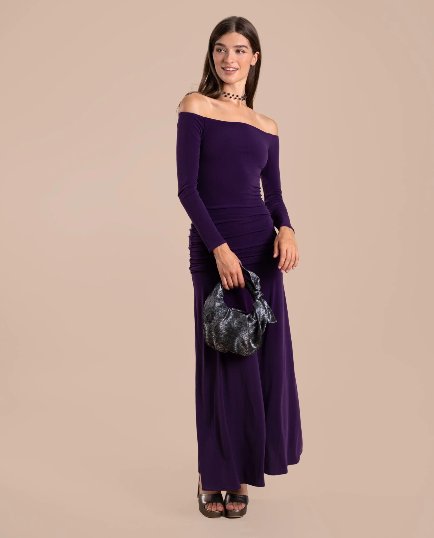 - Vestido midi morado de invitada